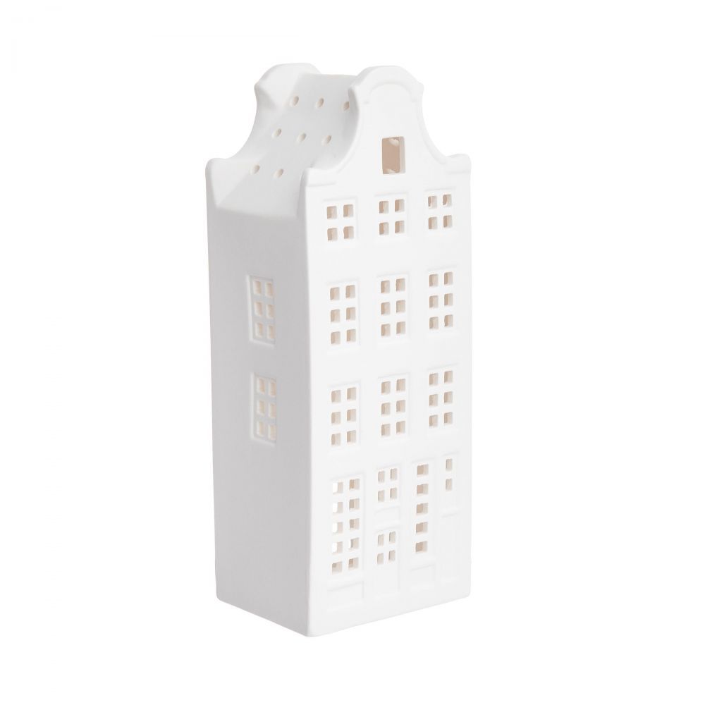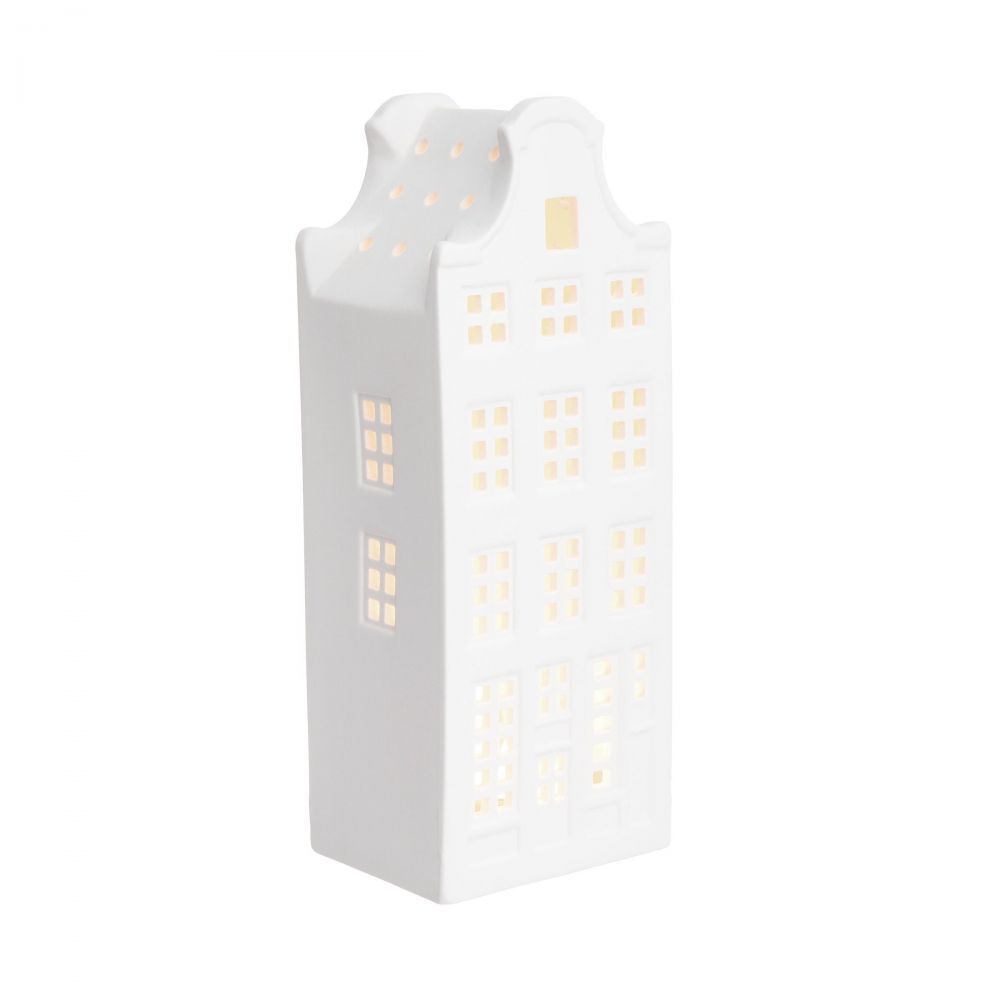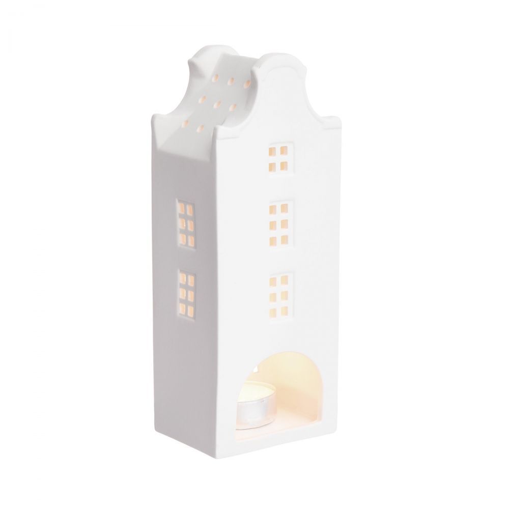 Αποδώστε ένα άκρως ρομαντικό χριστουγεννιάτικο πνεύμα στο σπίτι σας με το όμορφο σπιτάκι AMSTERDAM. Αυτό το διακοσμητικό είναι κατασκευασμένο από λευκή πορσελάνη και παραπέμπει στο τυπικό σχήμα σπιτιού που συναντά κανείς κατά μήκος των παραδοσιακών δρόμων της ολλανδικής μητρόπολης. Όταν ανάβει το κερί, το σπίτι λάμπει από το εσωτερικό του, καθιστώντας το ιδιαίτερα ζεστό τα κρύα χειμωνιάτικα βράδια. Διατίθενται και άλλες εκδόσεις, ιδανικές για συνδυασμό.