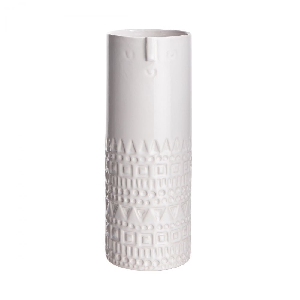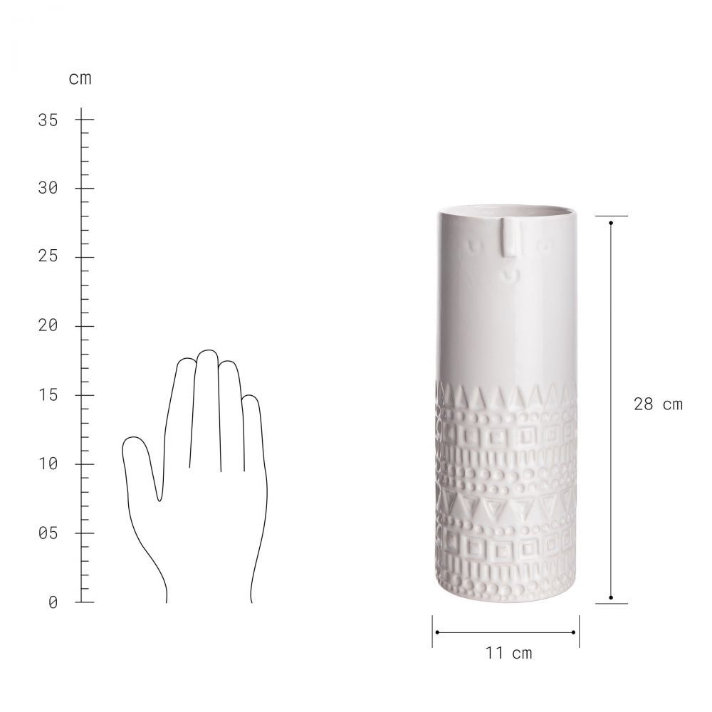 βάζο κεραμικό, με σχέδιο πρόσωπο 28cm, λευκό