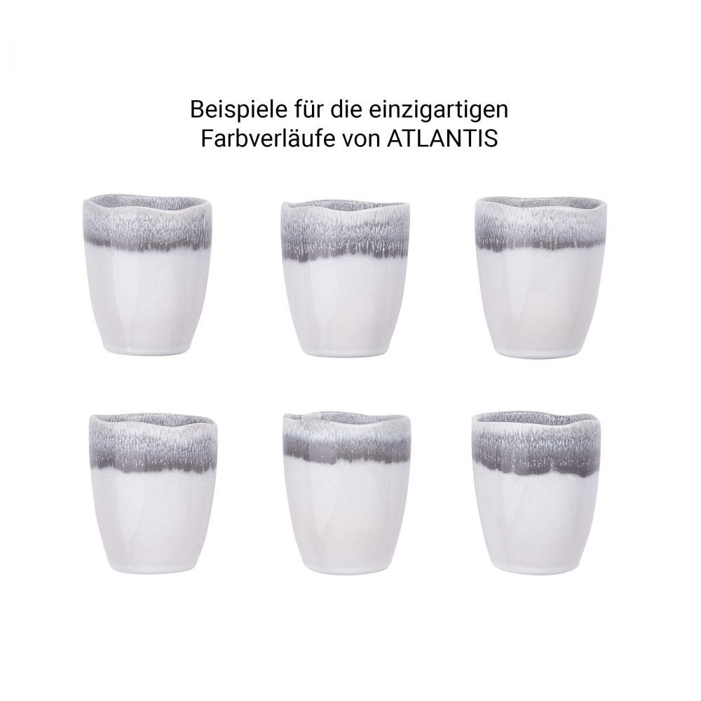 Με τη σειρά επιτραπέζιων σκευών Atlantis σε μοντέρνο στυλ boho και με οργανικά σχήματα, η υπερβολή έρχεται στο τραπέζι! Η κούπα με γκρι χρώμα είναι χειροποίητη στην Πορτογαλία. Η επιγυάλωση δημιουργεί ακανόνιστες χρωματικές αντανακλάσεις που κάνουν κάθε μέρος της σειράς πραγματικά μοναδικό Το Atlantis διατίθεται σε τρία διαφορετικά χρώματα, τα οποία μπορείτε να συνδυάσετε το ένα με το άλλο για να προσφέρετε ποικιλία στο τραπέζι σας. Το κεντρικό ιριδίζον χρώμα κάνει όλα τα μέρη ταιριάζουν τέλεια. Κάθε μέρος της σειράς είναι ασφαλές για πλυντήριο πιάτων και φούρνο μικροκυμάτων.