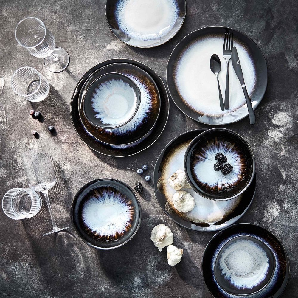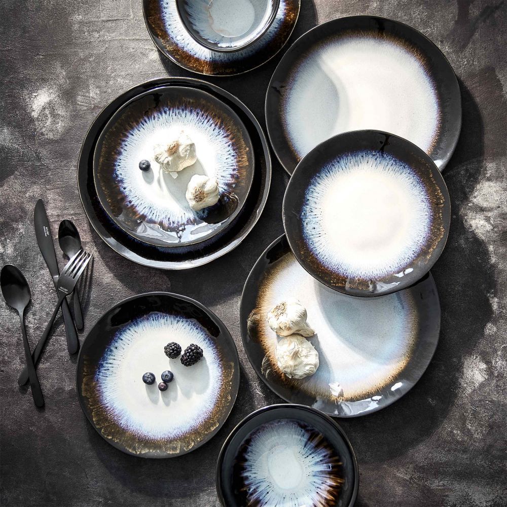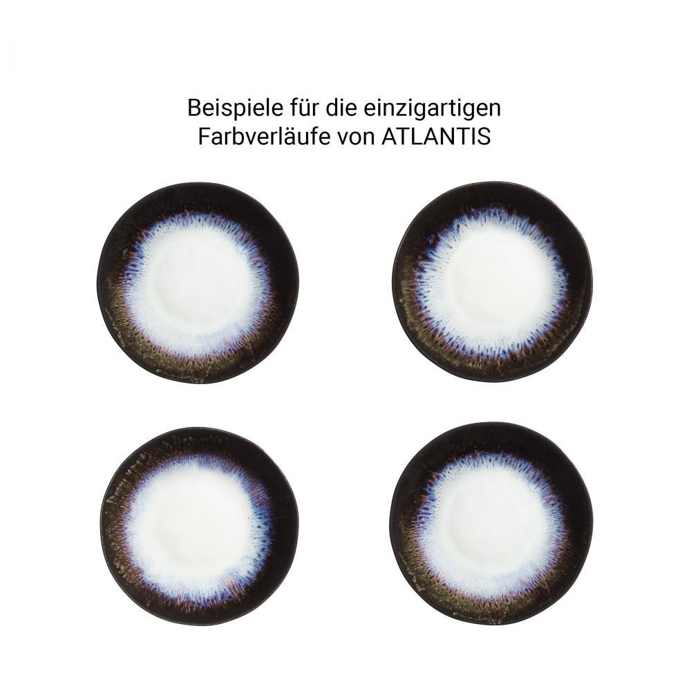 Η σειρά επιτραπέζιων σκευών ATLANTIS σε στυλ boho και οργανικά σχήματα, φέρνει τη μοντέρνα υπερβολή στο τραπέζι σας. Το μαύρο κεραμικό πιάτο είναι χειροποίητο και παράγεται στην Πορτογαλία. Το αντιδραστικό χρώμα δημιουργεί ακανόνιστες χρωματικές διαβαθμίσεις που κάνουν κάθε κομμάτι της σειράς πραγματικά μοναδικό. Η σειρά ATLANTIS διατίθεται σε διαφορετικά χρώματα, τα οποία μπορείτε να συνδυάσετε μεταξύ τους για να προσθέσετε ποικιλία στο τραπέζι σας. Τα σκεύη της σειράς είναι κατάλληλα για το πλυντήριο πιάτων και το φούρνο μικροκυμάτων.