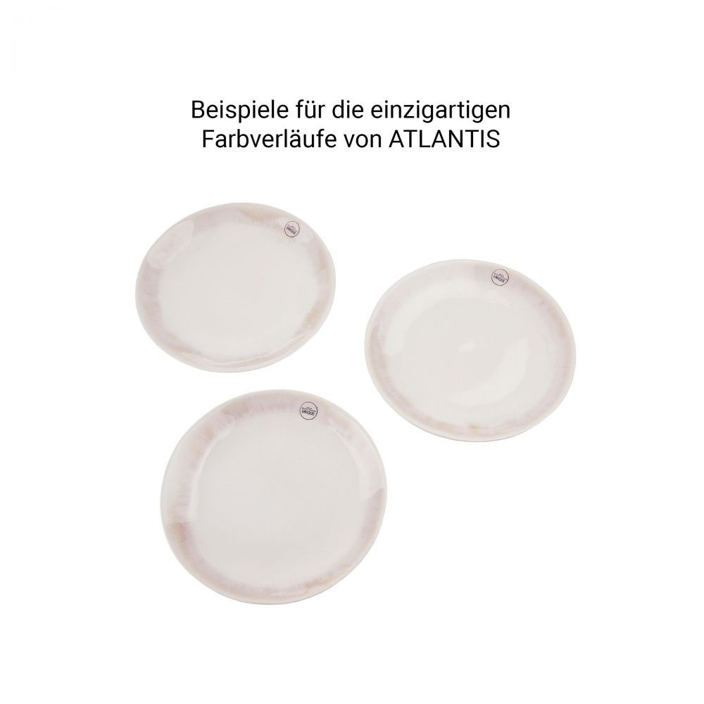 Η σειρά επιτραπέζιων σκευών ATLANTIS σε στυλ boho και οργανικά σχήματα, φέρνει τη μοντέρνα υπερβολή στο τραπέζι σας. Το μπεζ κεραμικό πιάτο είναι χειροποίητο και παράγεται στην Πορτογαλία. Το αντιδραστικό χρώμα δημιουργεί ακανόνιστες χρωματικές κλίσεις που κάνουν κάθε κομμάτι της σειράς πραγματικά μοναδικό. Η σειρά ATLANTIS διατίθεται σε διαφορετικά χρώματα, τα οποία μπορείτε να συνδυάσετε μεταξύ τους για να προσθέσετε ποικιλία στο τραπέζι σας. Τα σκεύη της σειράς είναι κατάλληλα για το πλυντήριο πιάτων και το φούρνο μικροκυμάτων.