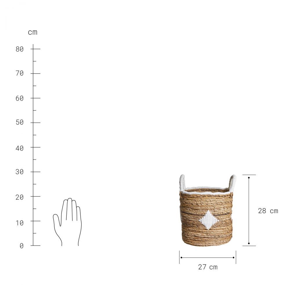 Τα φύλλα μπανάνας σε φυσικό χρώμα συνάντησαν την λευκή κορδέλα, και έτσι δημιουργήθηκε το καλοκαιρινό καλάθι BANANAS. Αυτό το καλάθι μπορεί να χρησιμοποιηθεί ως διακοσμητικό στοιχείο στο χώρο σας και ταυτόχρονα για αποθήκευση, π.χ. για γραφική ύλη στο γραφείο του σπιτιού ή για χτένες, βούρτσες κ.α. στο μπάνιο. Διατίθεται σε διάφορες εκδόσεις.