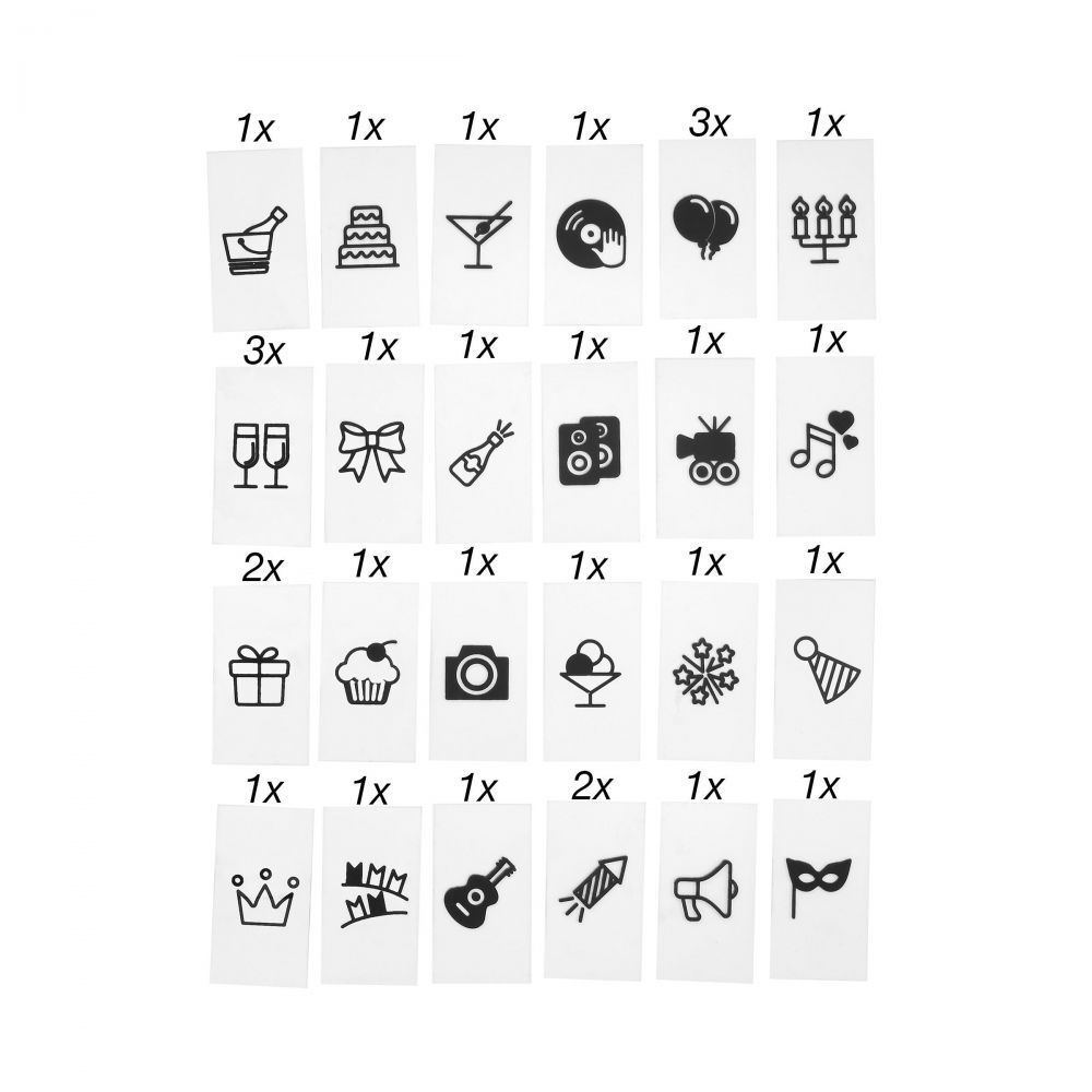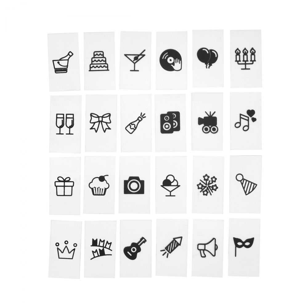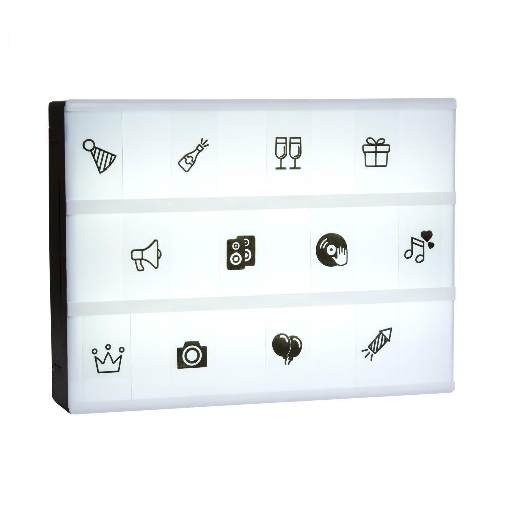 Με το Blockbuster σετ από σύμβολα με θέμα Party, διοργανώστε τα πιο εντυπωσιακά πάρτι και εντυπωσιάστε με το φωτεινό πίνακα Blockbuster. Κατάλληλο για το Blockbuster Lightbox 30x22 cm και το XL Lightbox.