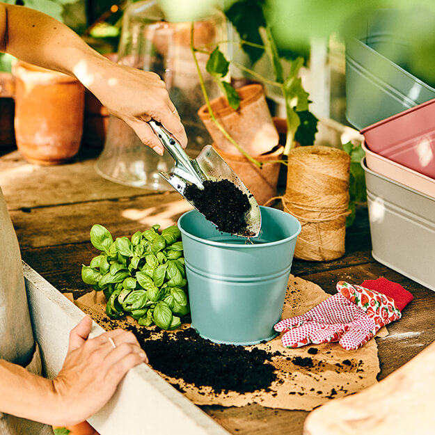 Το φρέσκο χώμα με πολλά θρεπτικά συστατικά παρέχει στα φυτά τη βέλτιστη φροντίδα! Πρώτα, βάλτε λίγο φρέσκο χώμα στη γλάστρα και μόνο τότε τοποθετείστε το λουλούδι. Με αυτόν τον τρόπο, οι ρίζες δεν χτυπούν το έδαφος και έχουν ένα μαλακό και θρεπτικό υπέδαφος. Η ποσότητα του χώματος που απαιτείται εξαρτάται από το ύψος της γλάστρας. Θα πρέπει ωστόσο να είναι αρκετό ώστε το φυτό να μην κάθεται πολύ βαθιά στην γλάστρα και τα λουλούδια και τα φύλλα του να μπορούν να απλωθούν. Συμβουλή: Στα έτοιμα μείγματα από χώμα που υπάρχουν στο εμπόριο, υπάρχουν ήδη πολλά σημαντικά θρεπτικά συστατικά στο χώμα. Έτσι τα φυτά έχουν όλα όσα χρειάζονται και συχνά δεν είναι αναγκαία η προσθήκη λιπάσματος!