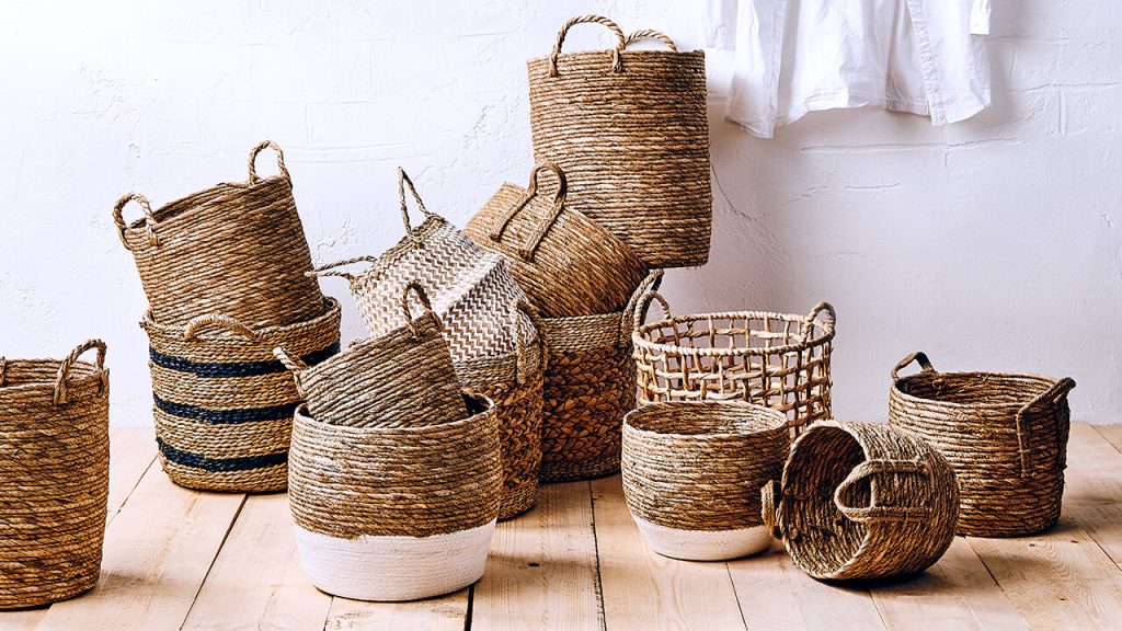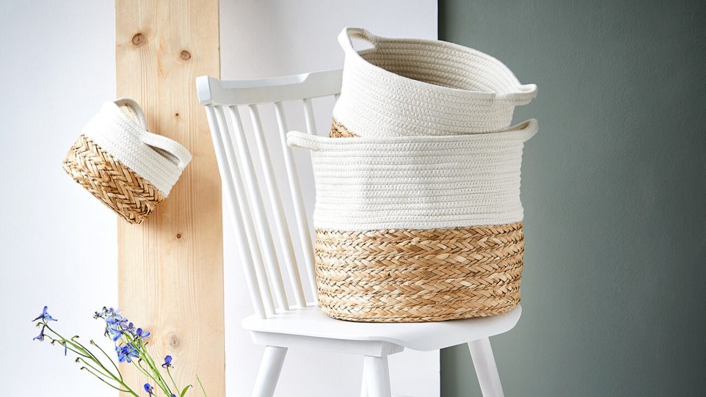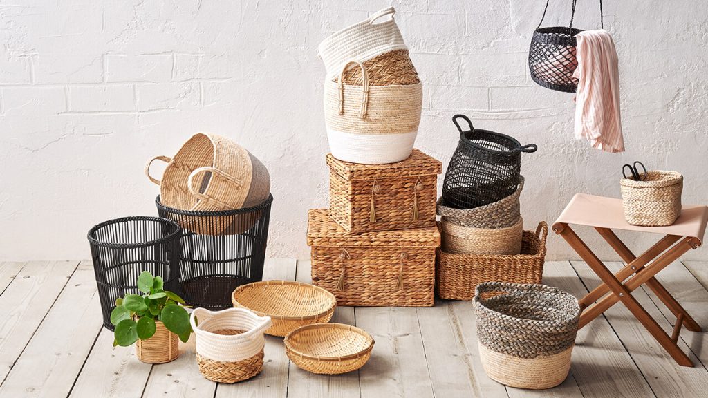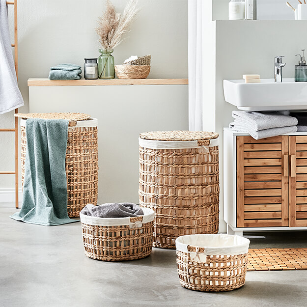 Μικρό, μεσαίο είτε μεγάλο. Στρογγυλό, τετράγωνο, με ή χωρίς καπάκι! Οι πιθανές χρήσεις των καλαθιών είναι τουλάχιστον τόσο ευέλικτες όσο το σχήμα, το χρώμα και το μέγεθός τους. Σχεδόν τα πάντα μπορούν να αποθηκευτούν τέλεια σε αυτά, στο μπάνιο καθώς και στο σαλόνι ή το υπνοδωμάτιο. Τα πλεκτά καλάθια που κατασκευάζονται από φυσικά υλικά είναι ευέλικτα και φροντίζονται εύκολα. Με τα χρώματα και μοτίβα τους, εξασφαλίζουν καλή ενέργεια στο δωμάτιο, άνεση και ωραία αίσθηση στο χώρο. Πολλές φυσικές ίνες είναι επίσης βιώσιμες επειδή αναπτύσσονται γρήγορα και εύκολα. Επιπλέον, η φυσική λεπτή εμφάνιση καλαθιών φτιαγμένών από φύκια, υάκινθο και παρόμοια υλικά είναι εξαιρετικά συμβατή με ένα ευρύ φάσμα στυλ εσωτερικού σχεδιασμού. Δεν είναι αυτός ένας καλός λόγος να τα αγαπήσεις?