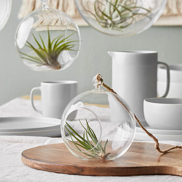 Ωραία ιδέα διακόσμησης με Τιλάνσια! Αφήστε τη να αιωρείται πάνω από το τραπέζι μέσα σε γυάλινη μπάλα! Υπάρχουν πάνω από 550 διαφορετικές ποικιλίες τιλάνσιας, που ανήκουν στην οικογένεια bromeliad. Βρίσκονται σε κάθε σπίτι σε όλη τη Νότια Αμερική και χωρίζονται σε γκρι και πράσινα είδη. Στην άνθιση, εντυπωσιάζουν με όμορφα, λαμπερά λουλούδια και μπορούν να διαρκέσουν αρκετά χρόνια.