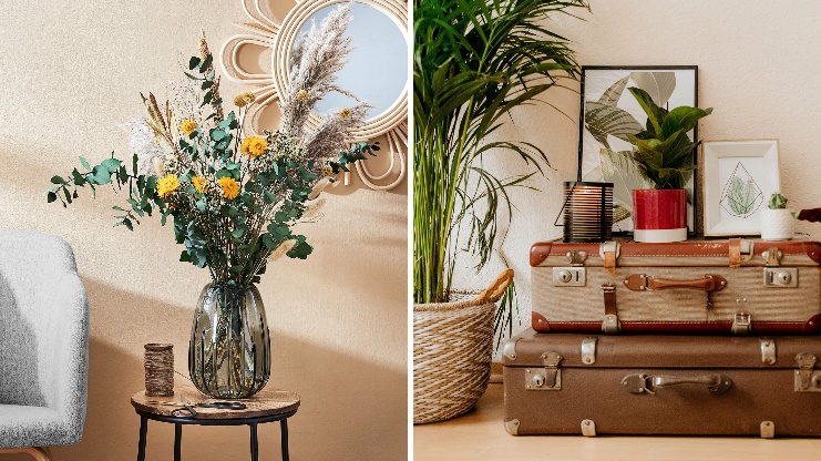 Εκτός από τα φυτά και τα αποξηραμένα λουλούδια, τα διακοσμητικά χόρτα και τα κλαδιά εναρμονίζονται επίσης με την τάση Natural Living. Είτε πρόκειται για μεμονωμένα κλαδιά είτε για ένα πλούσιο μπουκέτο, τα αποξηραμένα λουλούδια υπογραμμίζουν τη φυσική ατμόσφαιρα διαβίωσης και αποτελούν διακοσμητικό στοιχείο μακράς διάρκειας πάνω σε ένα έπιπλο.