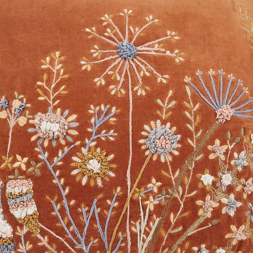 BOHEMIAN - μαξιλάρι με μοτίβο "λουλούδια" 50x50cm, σκούρο πορτοκαλί