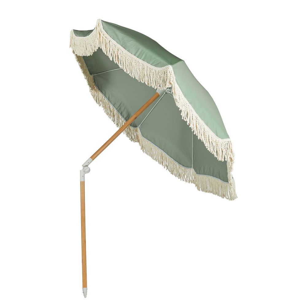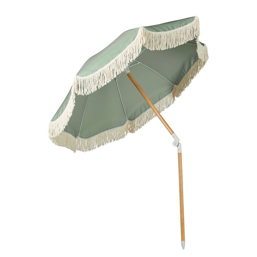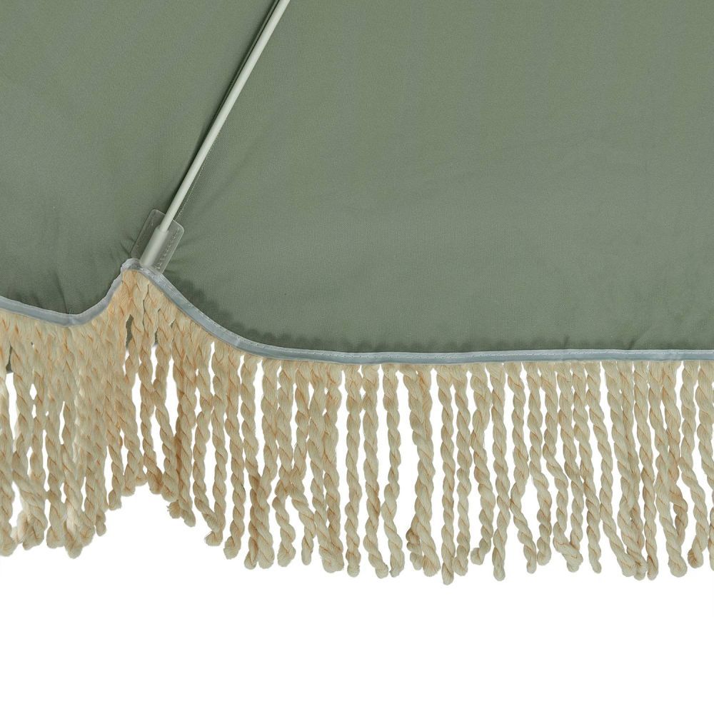 Και ξαφνικά, όλα μοιάζουν με Ίμπιζα: Με την ομπρέλα θαλάσσης BOHO LOUNGE με κρεμ κρόσσια, μπορείτε να μετατρέψετε ακόμη και την τοπική πισίνα, την κοντινότερη λίμνη ή το δικό σας μπαλκόνι σε μια μικρή απόδραση διακοπών. Απλώς πάρτε την ομπρέλα στην τσάντα μεταφοράς της, ανοίξτε την και χαλαρώστε κάτω από το σκίαστρο διαμέτρου 160 cm με προστασία UV 80, ενώ το παιχνιδιάρικο βαμβακερό κρόσσι κυματίζει απαλά στο αεράκι. Το κοντάρι της ομπρέλας είναι κατασκευασμένο από ξύλο οξιάς και, με διάμετρο 32 mm, εξασφαλίζει σταθερότητα και στήριξη.