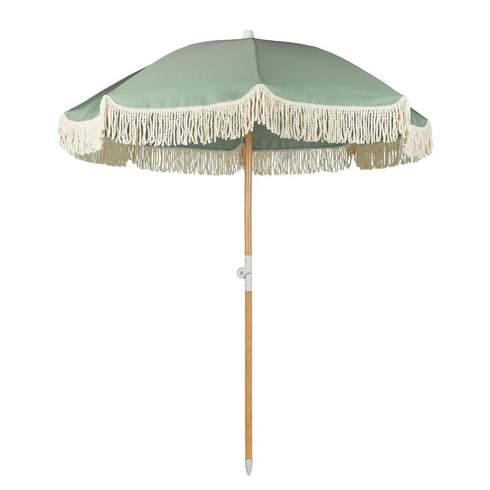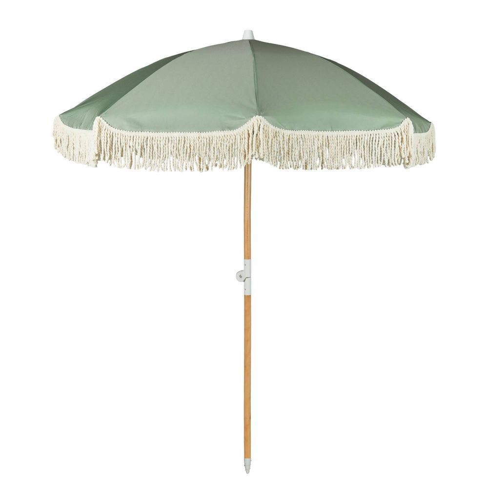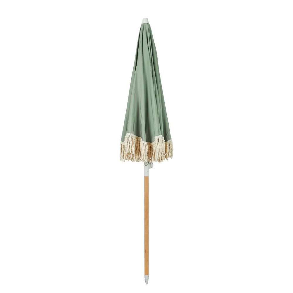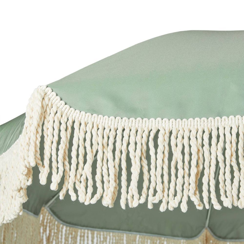 Και ξαφνικά, όλα μοιάζουν με Ίμπιζα: Με την ομπρέλα θαλάσσης BOHO LOUNGE με κρεμ κρόσσια, μπορείτε να μετατρέψετε ακόμη και την τοπική πισίνα, την κοντινότερη λίμνη ή το δικό σας μπαλκόνι σε μια μικρή απόδραση διακοπών. Απλώς πάρτε την ομπρέλα στην τσάντα μεταφοράς της, ανοίξτε την και χαλαρώστε κάτω από το σκίαστρο διαμέτρου 160 cm με προστασία UV 80, ενώ το παιχνιδιάρικο βαμβακερό κρόσσι κυματίζει απαλά στο αεράκι. Το κοντάρι της ομπρέλας είναι κατασκευασμένο από ξύλο οξιάς και, με διάμετρο 32 mm, εξασφαλίζει σταθερότητα και στήριξη.