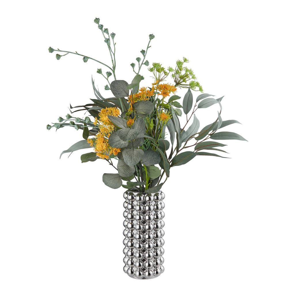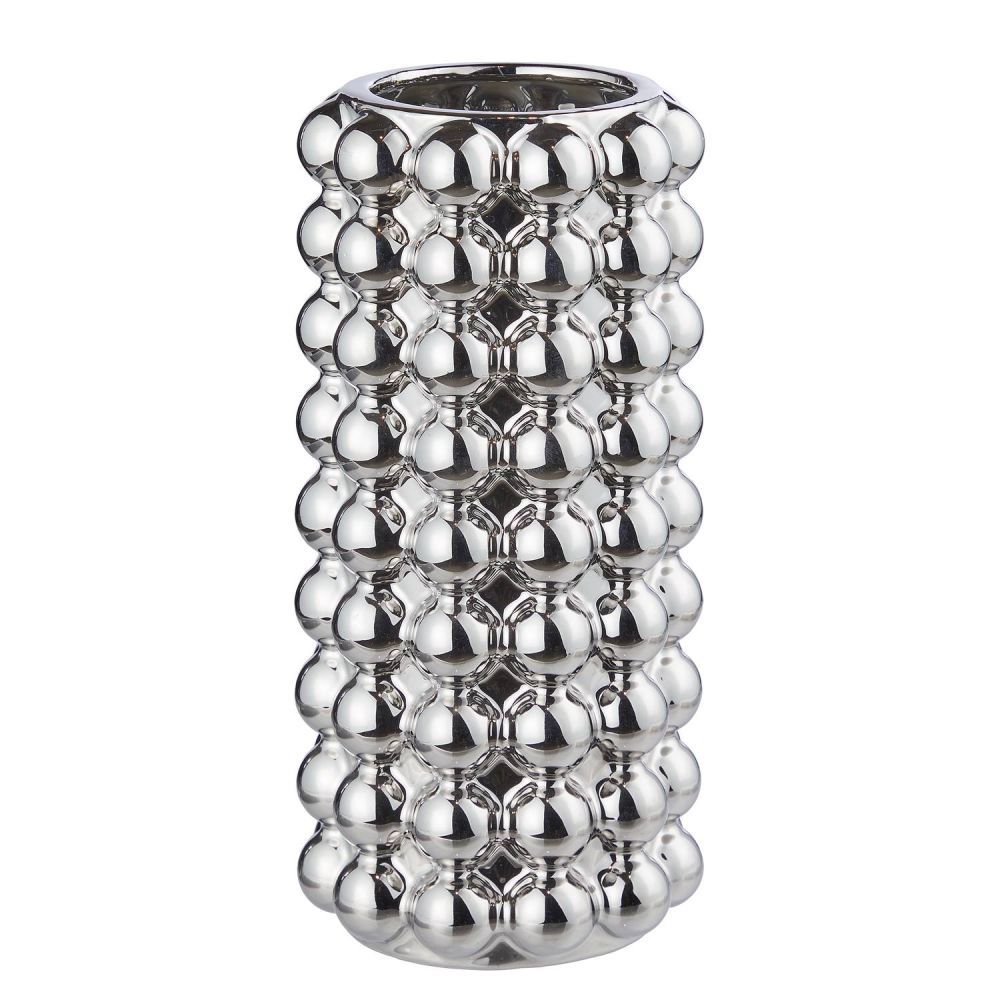 Προσθέστε λάμψη στο σπίτι σας με το κεραμικό βάζο BUBBLE. Αναδεικνύει το τραπέζι σας με το μοντέρνο σχήμα και το ασημί χρώμα του. Ένα εντυπωσιακό διακοσμητικό για εσωτερικούς χώρους. Το κομψό, κυλινδρικό σχήμα του είναι ιδανικό για λουλούδια ή αποξηραμένα κλαδιά.
