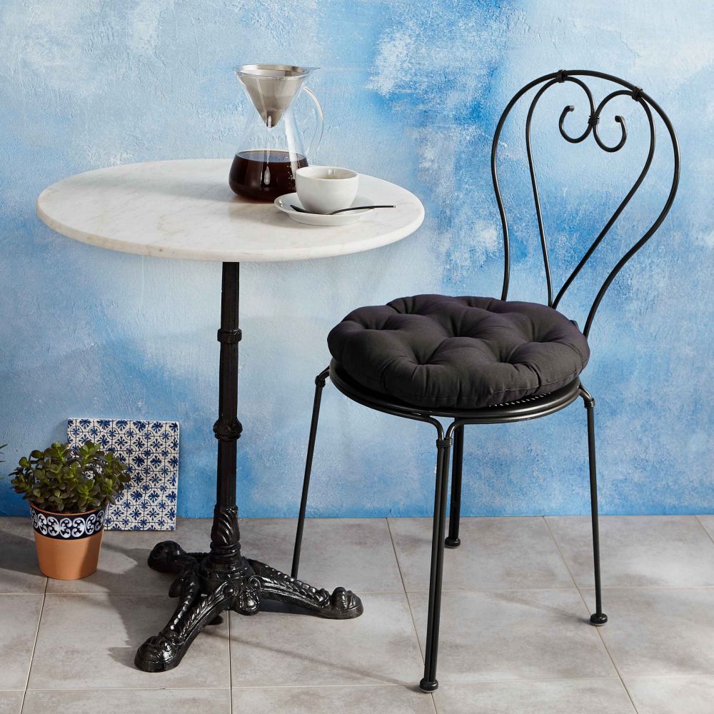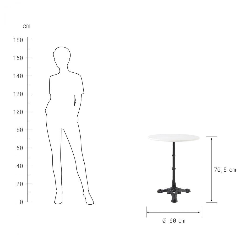 Η γαλλική γοητεία μπιστρό στο σπίτι σας: Το στρογγυλό τραπέζι μπιστρό Castello με μεταλλική βάση και μαρμάρινη επιφάνεια κυριαρχεί στο Savoir-Vivre. Ευέλικτη χρήση σε μπαλκόνι, βεράντα ή στον κήπο.Χαρακτηριστικά γνωρίσματα: ?Σταθερή βάση χυτοσιδήρου: για υψηλή σταθερότητα,? ρομαντικό στυλ με γαλλική ατμόσφαιρα, τυπικό τραπέζι μπιστρό: κατάλληλο για 2 άτομα, ?κατάλληλο για εσωτερική και εξωτερική χρήση. Το αντικείμενο παραδίδεται μερικώς συναρμολογημένο.