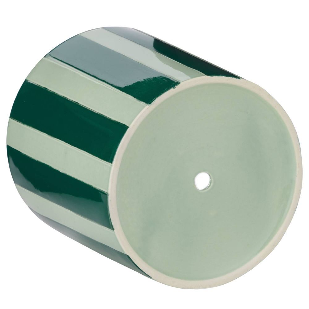 CIRCUS - κασπό ριγέ κεραμικό 20cm με πιατάκι, πράσινο