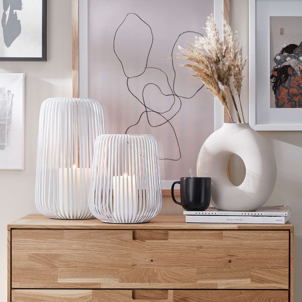 Το πιο όμορφο αντικείμενο στα σκοτεινά βράδια και τα μουντά πρωινά: μπορείτε να φωτίσετε τις ώρες χαλάρωσης στο σπίτι με το διακοσμητικό φανάρι COCOON από σίδερο σε λευκό χρώμα. Ως πραγματικό φωτιστικό, προσφέρει ατμοσφαιρικές πινελιές στο τραπέζι, πάνω σε μια συρταριέρα ή σε ένα μπουφέ. Διατίθενται και άλλα μεγέθη.