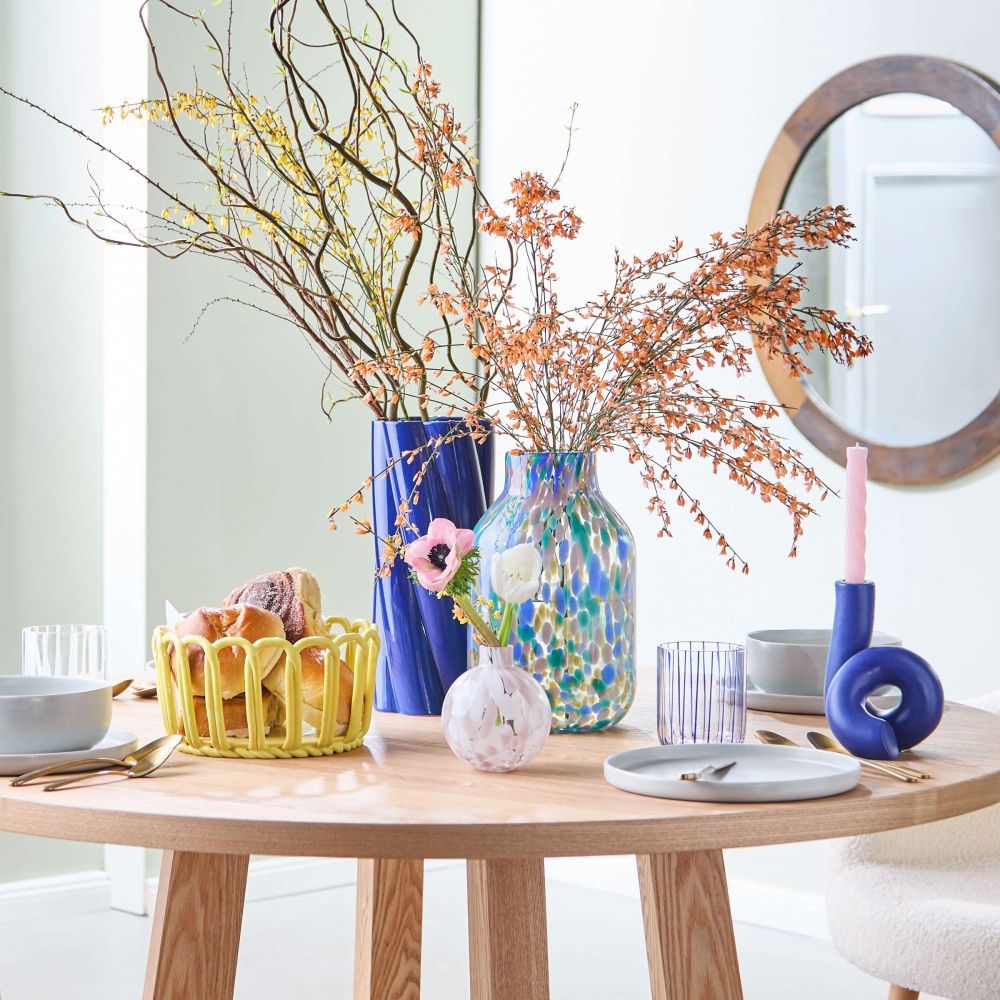 Επειδή το κομφετί ανεβάζει τη διάθεση, το μωβ-πορτοκαλί γυάλινο βάζο CONFETTI είναι διακοσμημένο με ένα σχέδιο που θυμίζει χάρτινα κομμένα κομμάτια που χορεύουν. Δημιουργήστε μια ανάλαφρη διακοσμητική στιγμή στο σπίτι σας, π.χ. σε τραπέζι, συρταριέρα ή περβάζι παραθύρου. Διατίθεται σε μια ακόμη έκδοση.