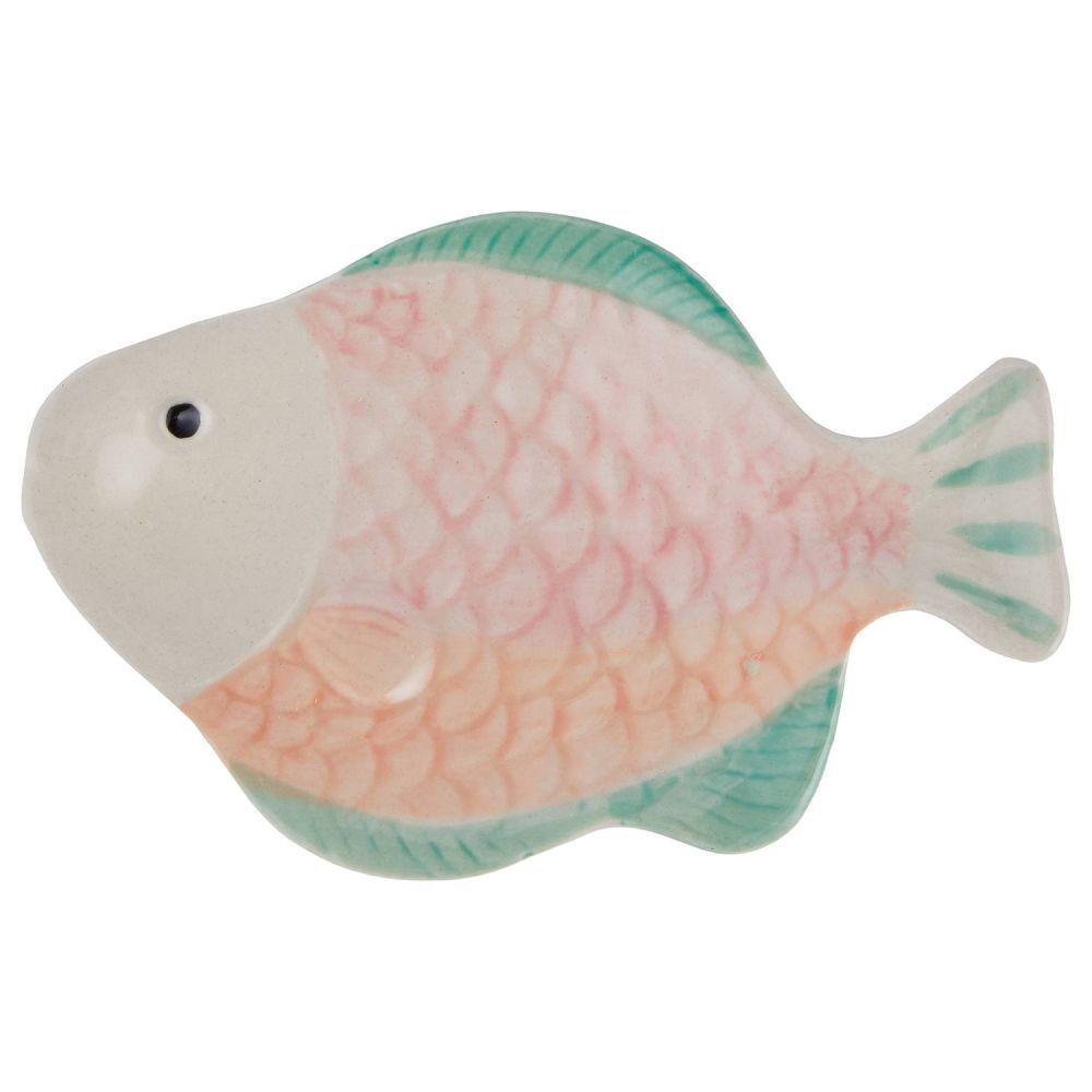 Αυτό το μίνι κεραμικό πιάτο φέρνει ναυτική ατμόσφαιρα στο τραπέζι σας: το σχήμα ψαριού, το ανοιχτόχρωμο φόντο και οι πολύχρωμες λεπτομέρειες δίνουν ένα παιχνιδιάρικο αποτέλεσμα. Ιδανικό για μικρά σνακ, ως θήκη κοσμημάτων ή απλά ως διακοσμητικό στοιχείο - κάθε κομμάτι θα φέρει χαμόγελο στο πρόσωπό σας. Συνδυάστε το με άλλα κομμάτια CORAL COAST και δημιουργήστε ένα χαρούμενο, καλοκαιρινό τραπέζι!