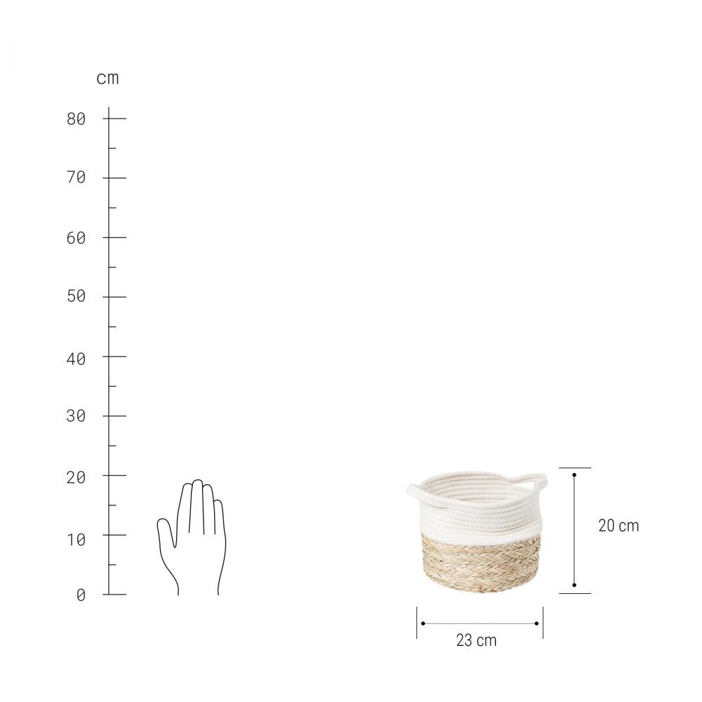 Λευκή κορυφή, φυσική βάση - το καλάθι COTTON BRAID διατηρεί τα πράγματα οργανωμένα, ταξινομώντας, στοιβάζοντας και αποθηκεύοντας τα ακόμη πιο όμορφα. Με λαβές. Άλλα διαθέσιμα μεγέθη και παραλλαγές.