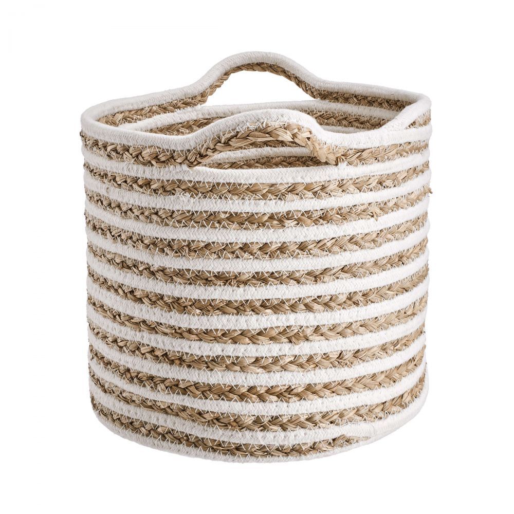 Φυσικά χρώματα με λευκές ρίγες: Το καλάθι COTTON BRAID από θαλάσσια φυτά και βαμβάκι κάνει την τακτοποίηση του χώρου, την οργάνωση και την αποθήκευση ακόμη πιο ευχάριστη. Άλλα μεγέθη διαθέσιμα.