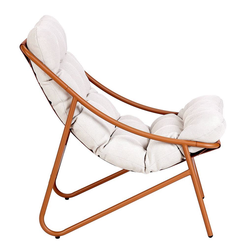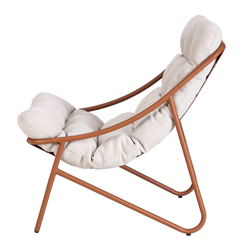 Νιώστε άνετα: Η μοντέρνα πολυθρόνα COZY TOWN με μαξιλάρια σας προσφέρει έναν από τους καλύτερους λόγους για να απολαύσετε το καλοκαίρι στο μπαλκόνι ή τη βεράντα σας. Αυτή η πολυθρόνα εξωτερικού χώρου με ανοιχτό καφέ ατσάλινο σκελετό είναι εξοπλισμένη με ένα άνετο κρεμ μαξιλάρι με επικάλυψη ολεφίνης. Αυτό το συνθετικό ύφασμα δεν είναι μόνο ανθεκτικό στην υπεριώδη ακτινοβολία, στεγνώνει γρήγορα, αναπνέει και απωθεί το νερό ενώ εντυπωσιάζει με μια υπέροχη αίσθηση που μοιάζει αρκετά με τα πραγματικά βαμβακερά υφάσματα. Έτσι μπορείτε να δημιουργήσετε μια πραγματική αίσθηση καθιστικού σε εξωτερικούς χώρους.