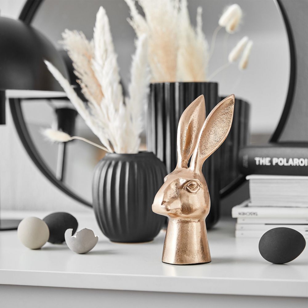 Το αλουμινένιο διακοσμητικό κεφαλάκι λαγού Easter,στολίζει υπέροχα το περβάζι του παραθύρου σας, τον μπουφέ σας ή το στρωμένο τραπέζι. Ανεξάρτητα από το πόσοι καλεσμένοι έρχονται για το πασχαλινό πρωινό ή γιορτάζουν την αρχή της άνοιξης μαζί σας ήδη από τον Μάρτιο.