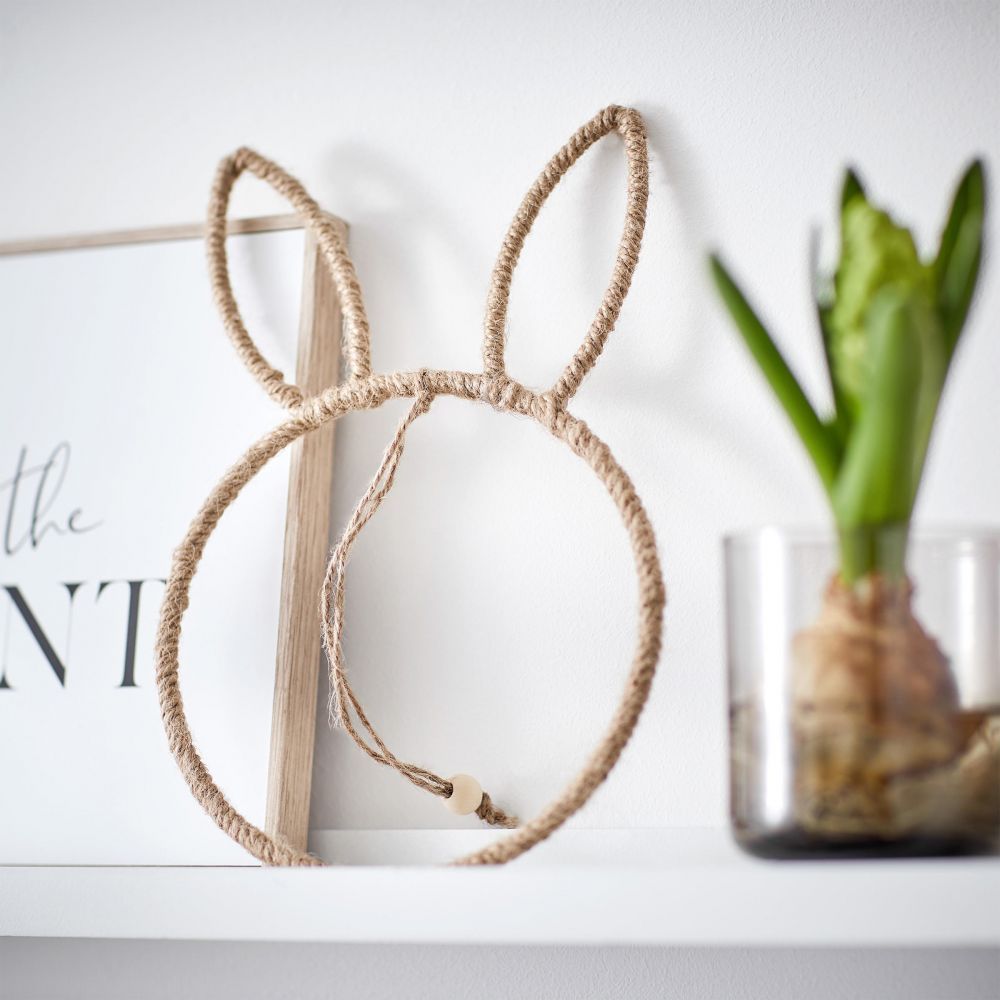 Το πασχαλινό λαγουδάκι έχει την τιμητική του με το μοντέρνο πασχαλινό στολίδι EASTER από γιούτα και μέταλλο. Η minimal εμφάνιση και η φυσική απόχρωση ταιριάζουν με μοντέρνα διακοσμητικά και τη φυσικότητα των κλαδιών, των λουλουδιών ή του ξύλου, π.χ. σε πασχαλινές ανθοδέσμες ή σε διακοσμητικά τραπέζια.