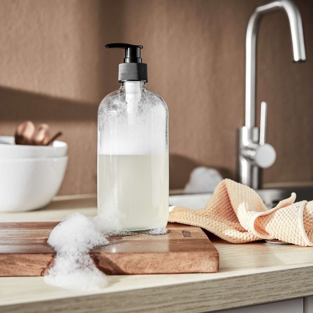 Η επαναπλήρωση μειώνει τα απόβλητα και προστατεύει περιβάλλον! Η διάφανη συσκευή υγρού απορρυπαντικού Eco από γυαλί με μαύρο dispenser έχει χωρητικότητα 500 ml για να δημιουργήσετε το δικό σας υγρό απορρυπαντικό ή να το αναπληρώσετε με αυτό της αρεσκείας σας.