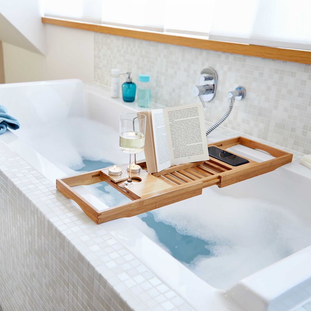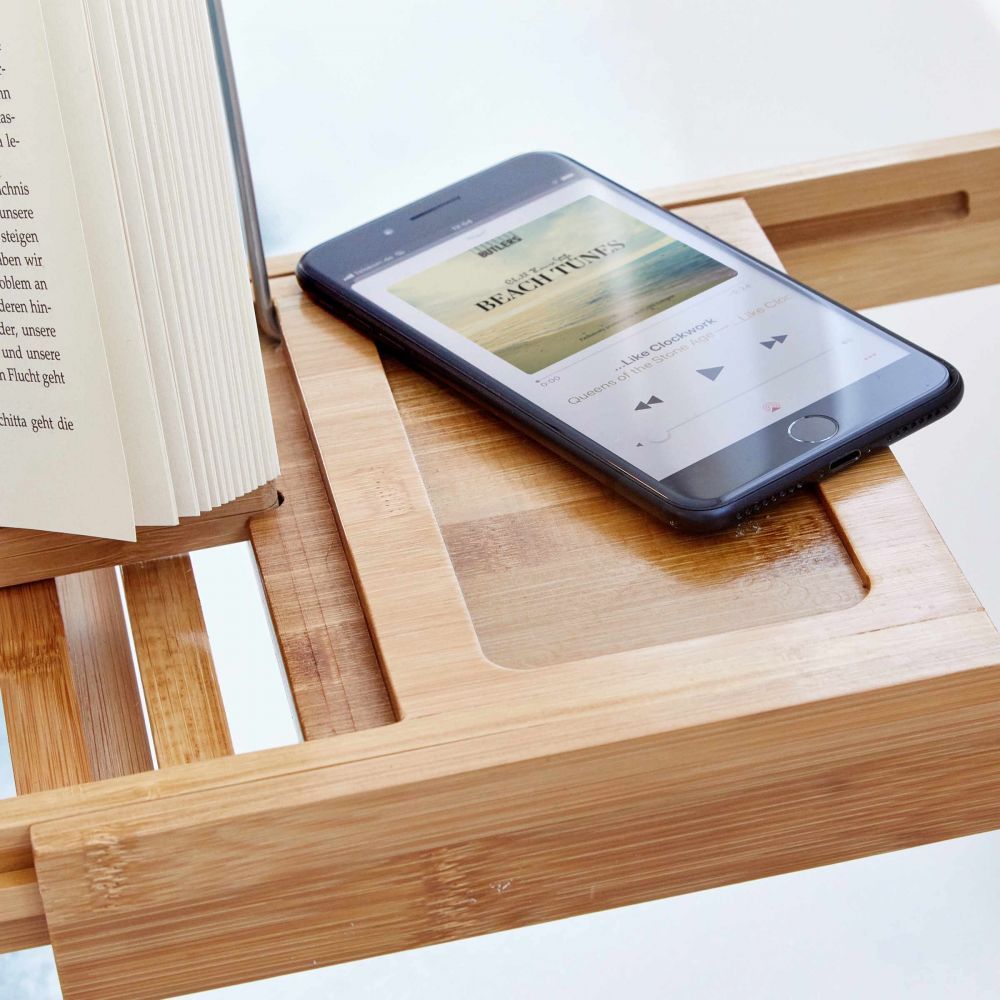 Το ράφι μπανιέρας FEELS LIKE HEAVEN από ξύλο μπαμπού, παρέχει αρκετό χώρο για να τοποθετήσετε τα πράγματα που σας αρέσουν όπως ένα βιβλίο ή ένα ποτήρι σαμπάνιας. Το μόνο που μένει είναι να χαλαρώσετε στο τέλος μιας κουραστικής ημέρας.