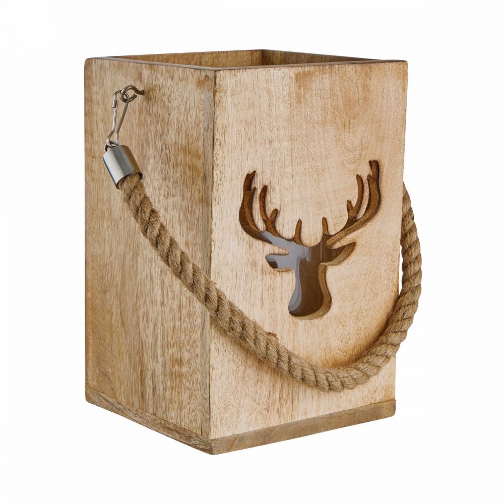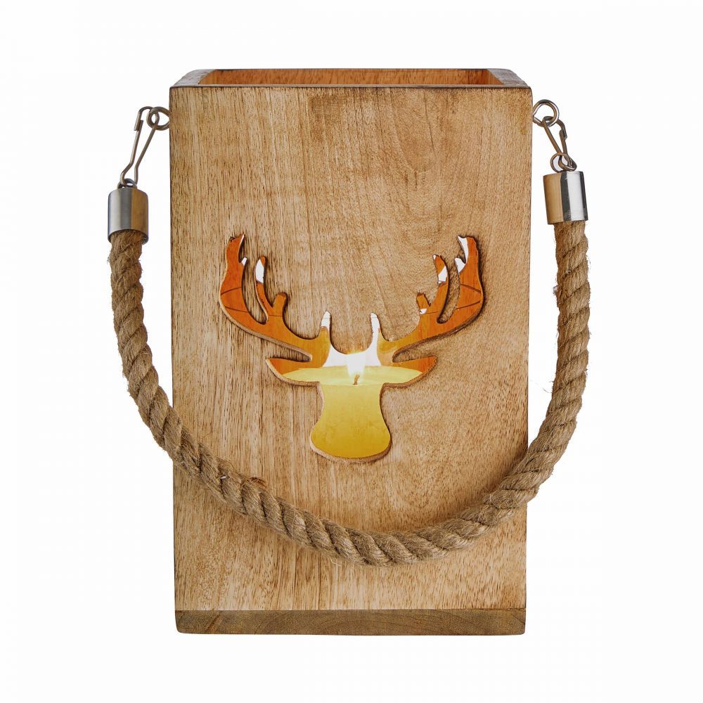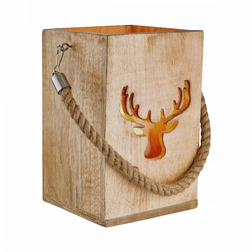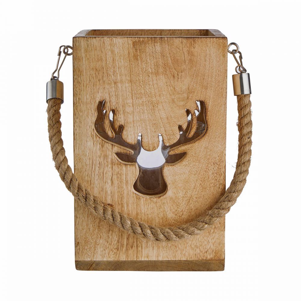 FOREST - φανάρι ξύλινο με διακόσμηση "ελάφι" H24cm