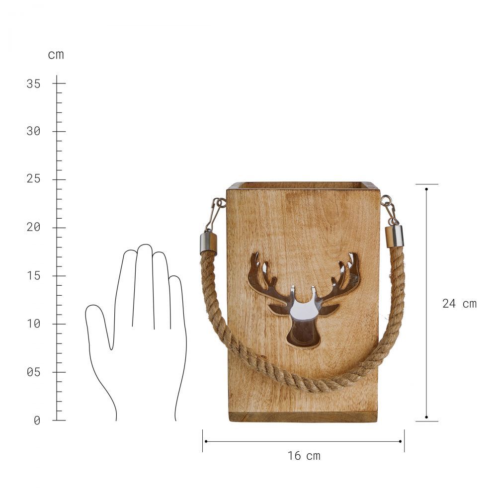 φανάρι ξύλινο με διακόσμηση "ελάφι" H24cm