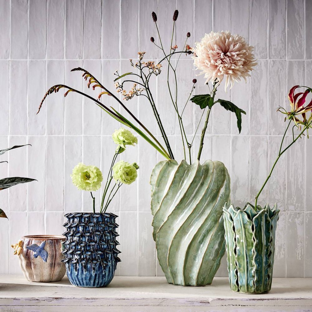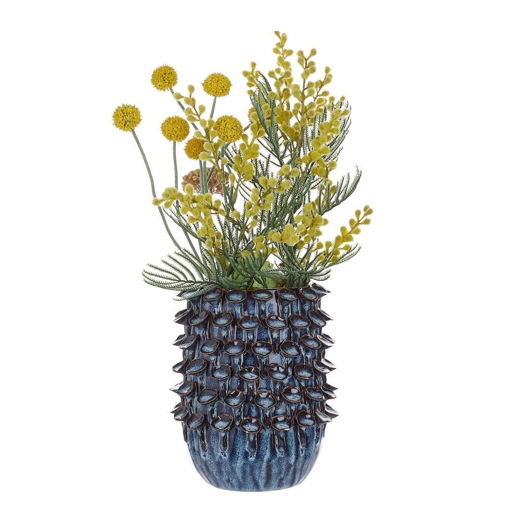 Το σκούρο μπλε γυαλιστερό βάζο GAIA πήρε το όνομά του από τη μυθολογική αρχέγονη μητέρα. Το ασυνήθιστο βάζο είναι διακοσμημένο με οργανικά διαμορφωμένα τρισδιάστατα στοιχεία και όμορφες χρωματικές διαβαθμίσεις, δημιουργώντας μια καλλιτεχνική και ζωντανή επιφάνεια. Ένα πραγματικό στολίδι που θα αναδείξει τα μπουκέτα σας με αποξηραμένα λουλούδια και κλαδιά με εξαιρετικό αποτέλεσμα.