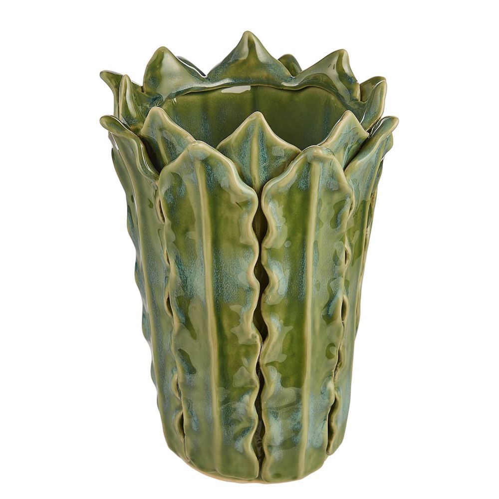 Το κεραμικό βάζο GAIA με φύλλα σε πράσινο χρώμα είναι περίτεχνα φιλοτεχνημένο με πολλές οργανικές λεπτομέρειες. Ο ασυνήθιστος σχεδιασμός του συνδυάζει αποτελεσματικό 3D με φυσική απομίμηση φύλλων. Ένα πραγματικά εντυπωσιακό αξεσουάρ για το σπίτι σας.