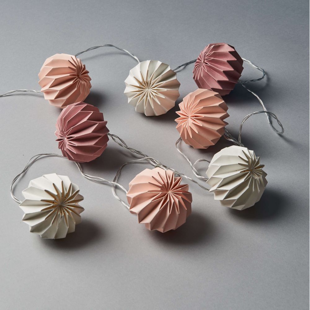 LED αλυσίδα φωτισμού 8 τμχ από χαρτί, λευκό/ροζ/nude. Λειτουργεί με μπαταρίες & USB.