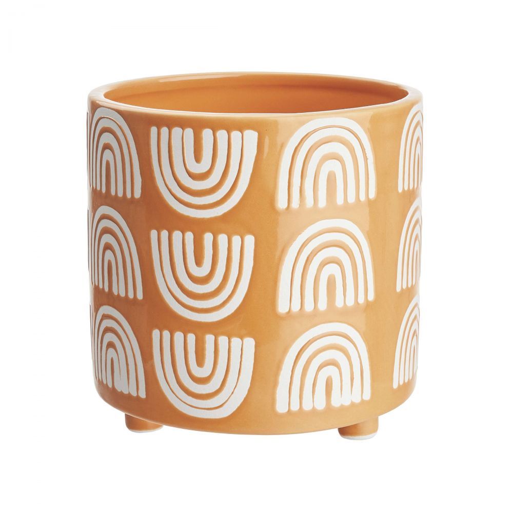 Διατηρήστε τη θετική ενέργεια των φυτών με το κασπό HAPPY RAINBOW σε λαμπερό κίτρινο χρώμα. Τα ουράνια τόξα κοσμούν την επιφάνεια του κεραμικού κασπό και εκπέμπουν στο χώρο θετικά vibes!