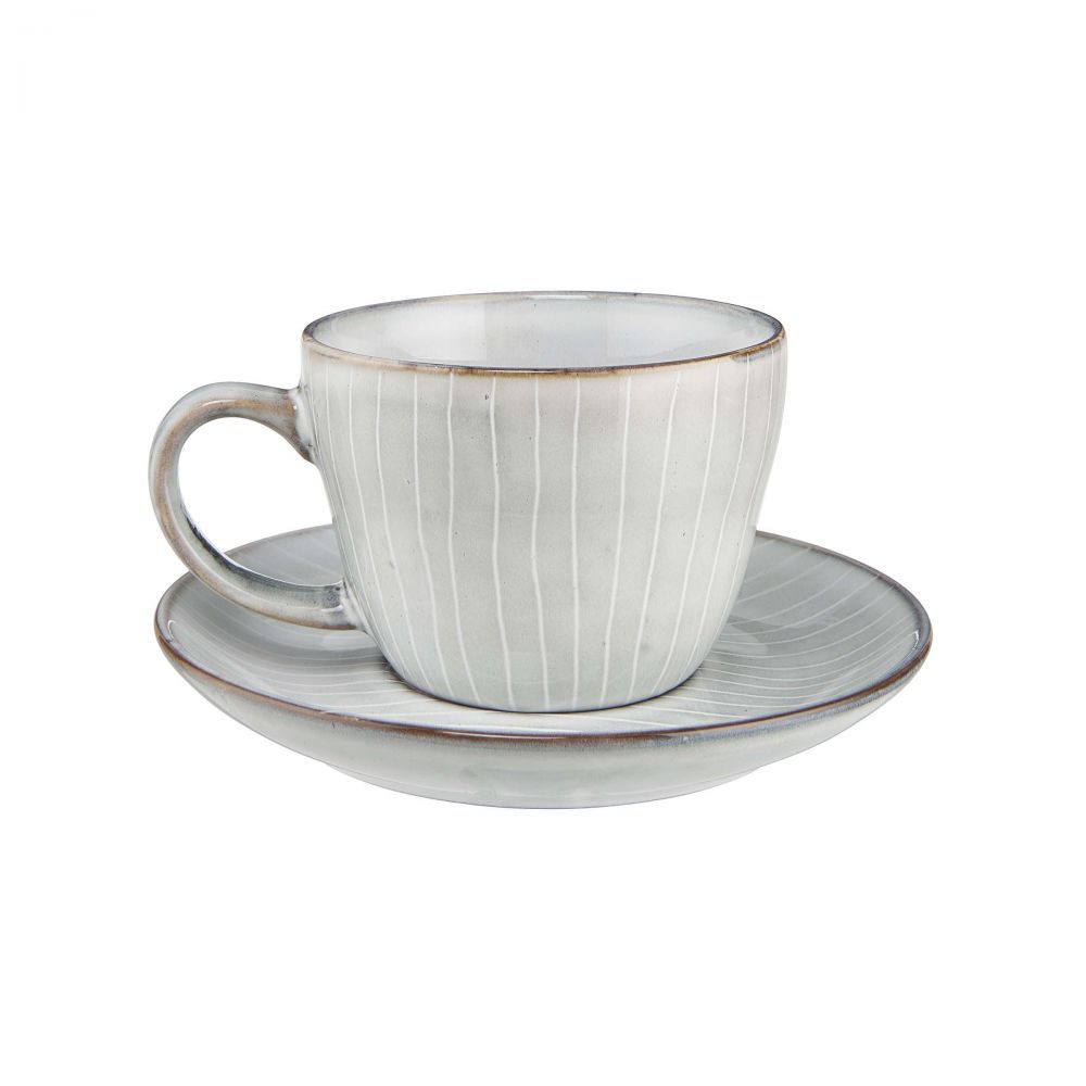 Το φλιτζάνι του καφέ Henley με πιατάκι ανυπομονούν να πάρουν πρωινό ή να πιουν ένανκαφέ με εσάς και τους φίλους σας. Από τη σειρά Henley διατίθενται: ένα μεγάλο πιάτο, ένα μικρό πιάτο, ένα φλιτζάνι, μια τσαγιέρα και άλλα μπολ, καθώς και κουτιά αποθήκευσης.Χαρακτηριστικά: -Υψηλής ποιότητας κεραμικό: ανθεκτικό και ανθεκτικό στη θερμότητα -Κάθε μέρος είναι μοναδικό: φυσικές διαφορές στο χρώμα -Μια φυσική εμφάνιση με γοητεία και χαρακτήρα -Σκανδιναβικός σχεδιασμός -Κατάλληλο για κάθε περίσταση λόγω του απλού και στιβαρού σχεδιασμού του