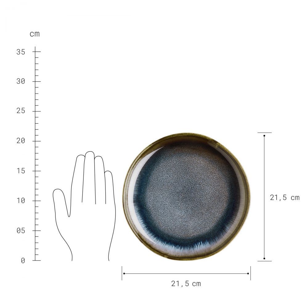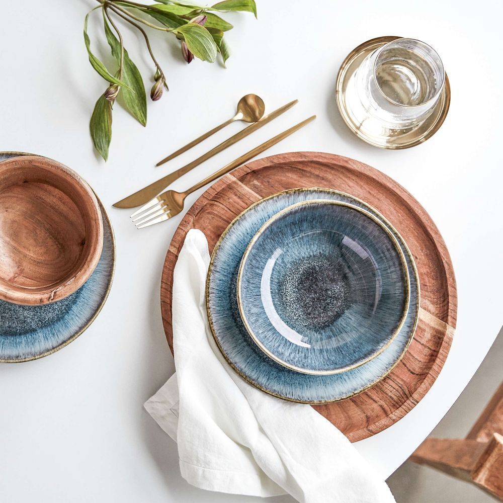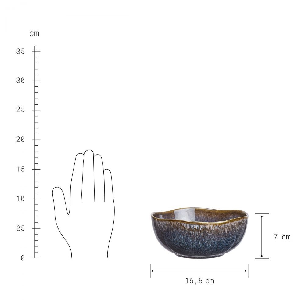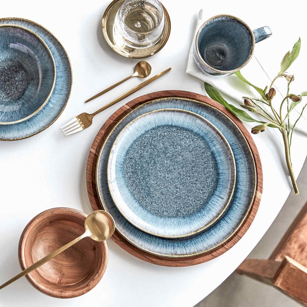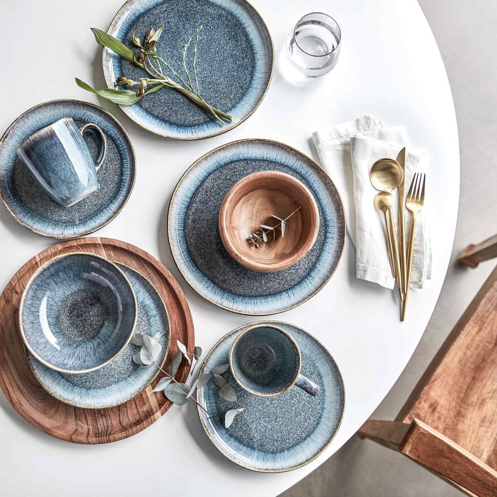 Όταν το αντιδραστικό λούστρο γίνεται έργο τέχνης: δεν μπορείτε να αντισταθείτε στο συναρπαστικά όμορφο σερβίτσιο 16 τεμαχίων HILDA. Οι ιριδίζουσες μπλε αποχρώσεις του θυμίζουν σκανδιναβικά φιόρδ και αλπικές λίμνες, ενώ το οργανικό του σχήμα μαρτυρά την εγγύτητα με τη φύση. Κάθε κομμάτι αυτής της μοναδικής σειράς πήλινων επιτραπέζιων σκευών είναι μοναδικό, και κάθε τραπέζι με πιάτα, μπολ και φλιτζάνια HILDA είναι μια πανδαισία για τα μάτια.