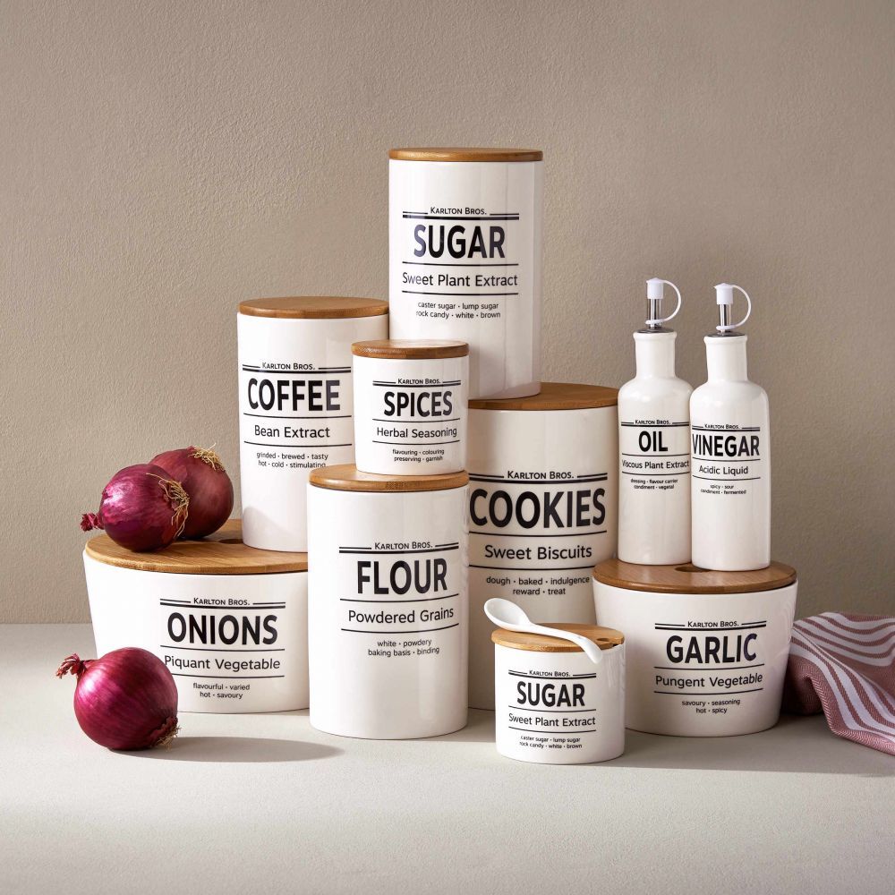 Το δοχείο για σκόρδα Karlton Bros. σε αγγλικό στυλ δεν είναι μόνο όμορφο αλλά είναι και το ιδανικό για την αποθήκευση των σκόρδων σας. Το δοχείο σκόρδου με καπάκι από μπαμπού και φλάντζα σιλικόνης παρέχει βέλτιστη προστασία από το φως και την υγρασία, έτσι ώστε τα σκόρδα να παραμένουν φρέσκα για μεγαλύτερο χρονικό διάστημα. Επιπλέον, το δοχείο πορσελάνης χάρη στο καπάκι, προστατεύει τον περιβάλλοντα χώρο από τις μυρωδιές και έτσι μπορείτε να τοποθετήσετε το δοχείο γεμάτο σκόρδα χωρίς δισταγμό οπουδήποτε στην κουζίνα, στο ράφι ή στο συρτάρι, έχουντας ταυτόχρονα και μία όμορφη διακόσμηση. Υπάρχει διαθέσιμο και δοχείο για κρεμμύδια και άλλα δοχεία αποθήκευσης σε αγγλικό σχεδιασμό από τη σειρά Karlton Bros. για την κουζίνα σας.