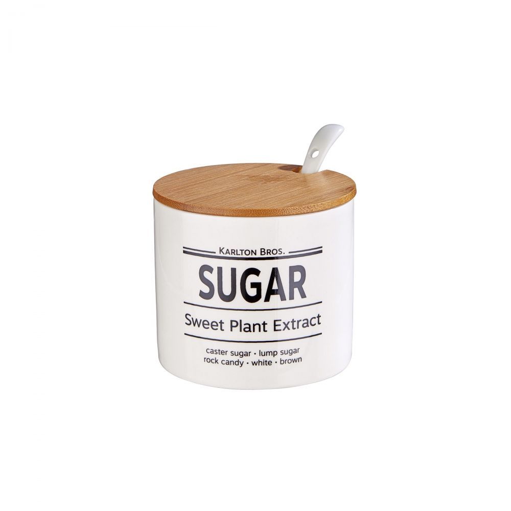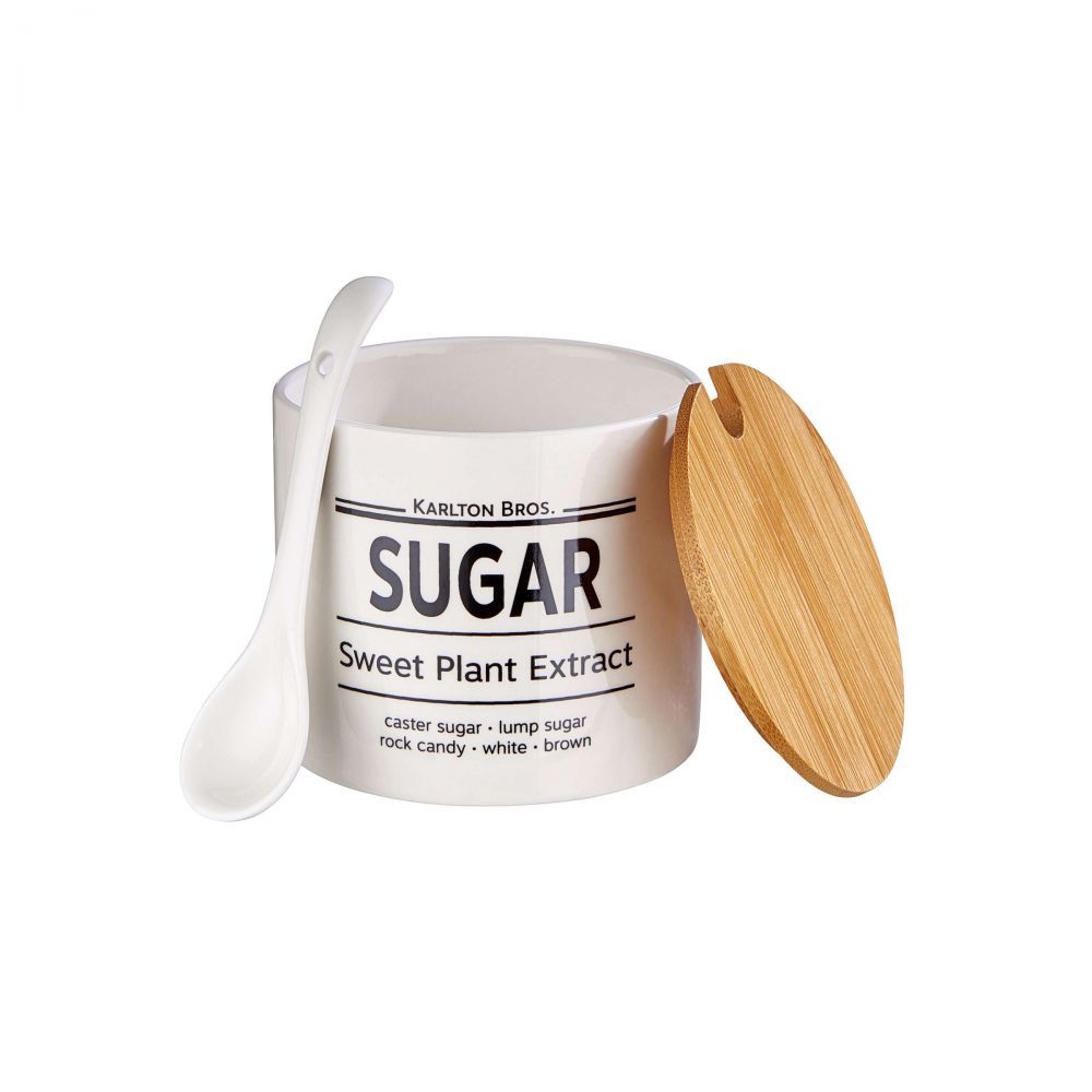 Το δοχείο για ζάχαρη Karlton Bros. σε αγγλικό στυλ, δεν πρέπει να λείπει από καμία συνάντηση για καφέ ή τσάι. Το στρογγυλό δοχείο ζάχαρης με καπάκι από μπαμπού είναι ένα πραγματικό στολίδι στο τραπέζι του καφέ σας. Με το μικρό κεραμικό κουτάλι προσθέτετε τη ζάχαρη στον καφέ και το τσάι με αγγλικό τρόπο και έτσι απολαμβάνετε το ρόφημά σας όπως θα έπρεπε. Η σειρά Karlton Bros. παρέχει και άλλα δοχεία αποθήκευσης, όλα με τον ίδιο αγγλικό σχεδιασμό.