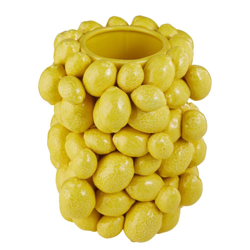 βάζο κεραμικό με διακοσμητικά λεμόνια 20cm, κίτρινο