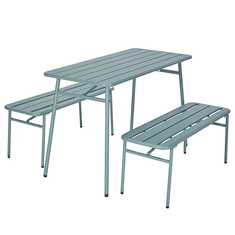 Θα θέλατε να νιώσετε άνετα στο μπαλκόνι, τη βεράντα ή τον κήπο σας; Το σετ κήπου LINESIDE που αποτελείται από τραπέζι και 2 παγκάκια σας προσκαλεί να καθίσετε. Το μοντέρνο σετ είναι κατασκευασμένο από ατσάλι και διατίθεται σε έναν όμορφο χρωματικό τόνο. Διακοσμήστε το με μαξιλάρια και αξεσουάρ τραπεζιού όπως επιθυμείτε και το αγαπημένο σας σημείο εξωτερικού χώρου είναι έτοιμο.