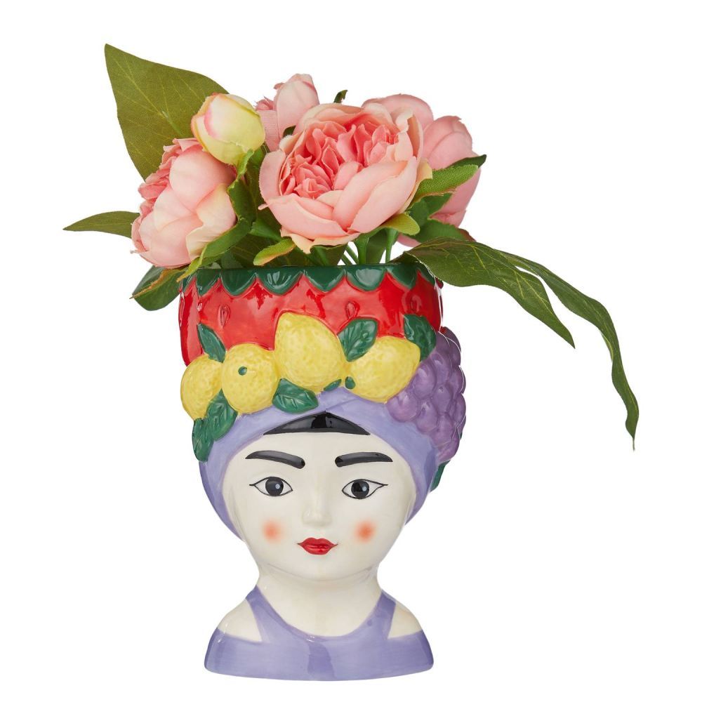 Το βάζο LIMA Strawberry έχει τη μορφή μίας εξωτικής γυναίκας με πολύχρωμα φρούτα. Στη μέση αυτών των φρούτων μπορείτε να τακτοποιήσετε λουλούδια και κλαδιά ή να τοποθετήσετε μια μικρή γλάστρα. Με αυτόν τον τρόπο μπορείτε να δημιουργήσετε ένα εντυπωσιακό centerpiece που θα τραβήξει τα βλέμματα και θα πάει τη διακόσμηση του τραπεζιού σας σε ένα νέο επίπεδο. Περίτεχνα φιλοτεχνημένο.