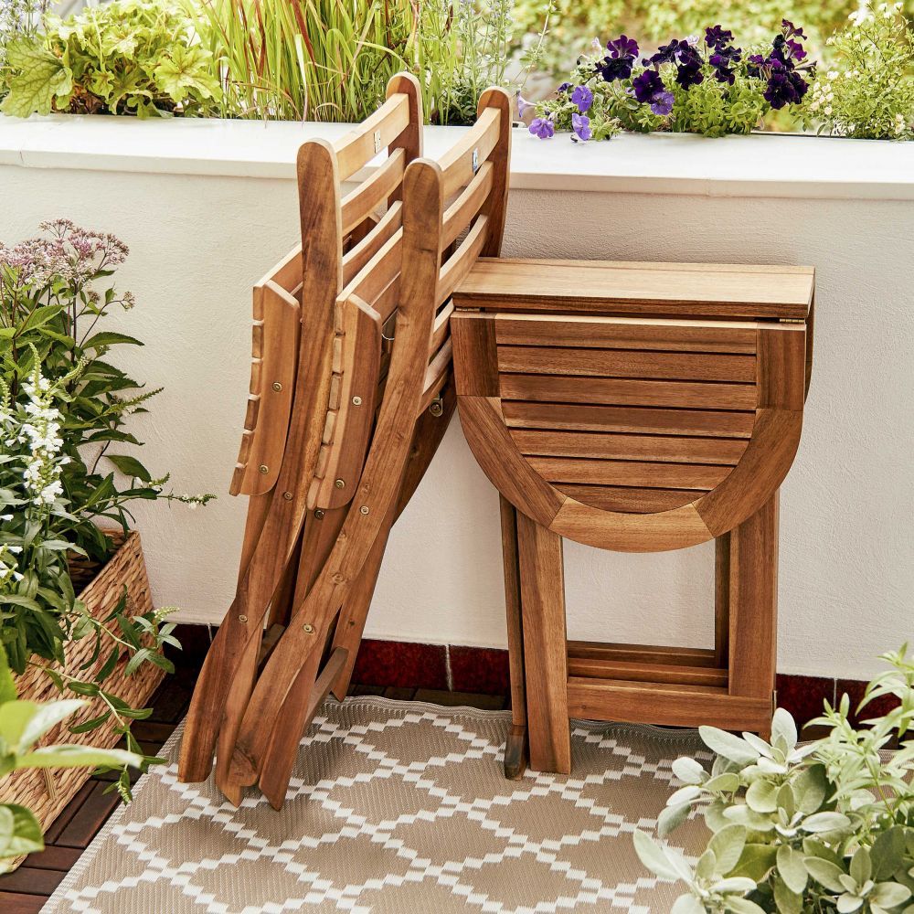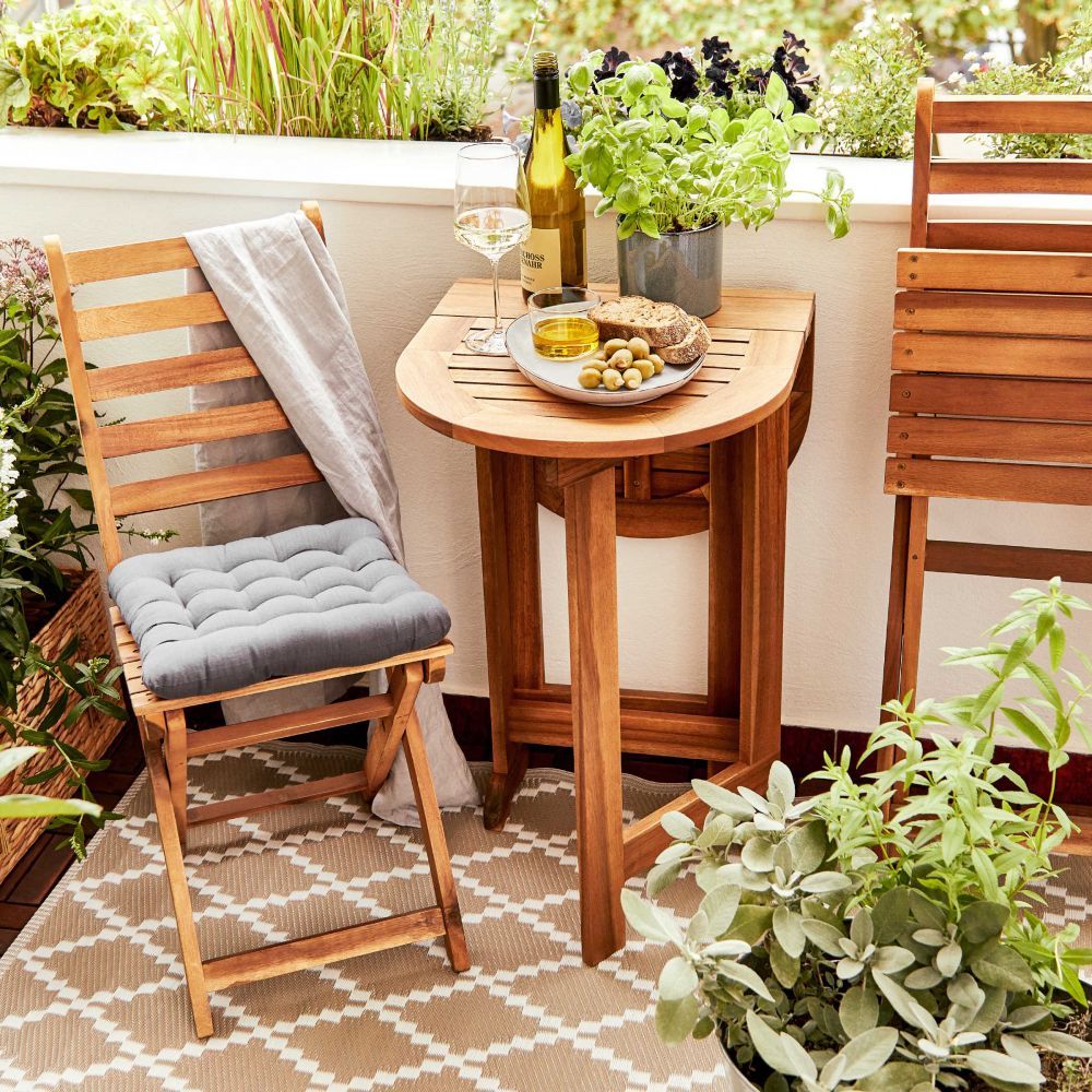 Το πρακτικό πτυσσόμενο τραπέζι LODGE από ξύλο ακακίας είναι ιδανικό για μικρά μπαλκόνια. Εάν υπάρχει έλλειψη χώρου αλλά θέλετε να απολαύσετε πρωινό για δύο ανοίξτε το ενώ όταν έρχονται καλεσμένοι και τα πράγματα είναι οριακά, απλώς χρησιμοποιήστε τη μία πλευρά ή τοποθετήστε το τραπέζι στην άκρη για να εξοικονομήσετε χώρο. Έτσι, τίποτα δεν στέκεται πλέον εμπόδιο στην απόλαυση!
