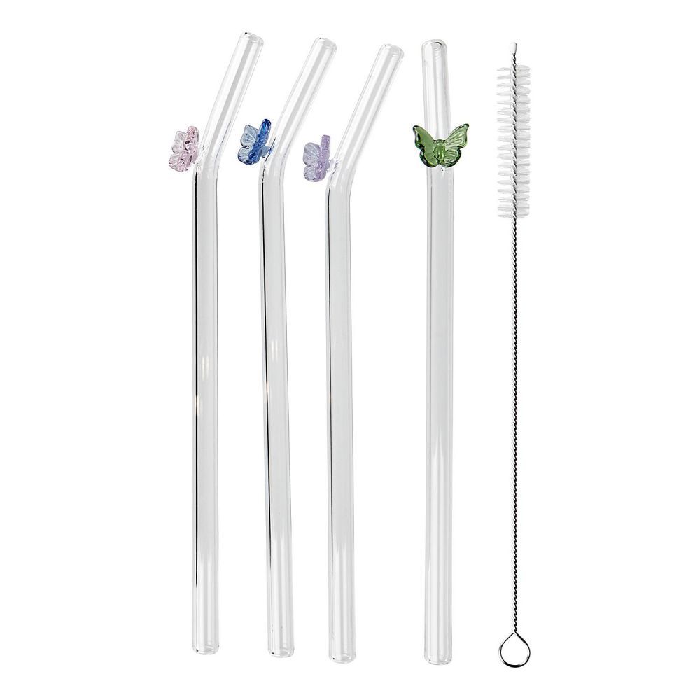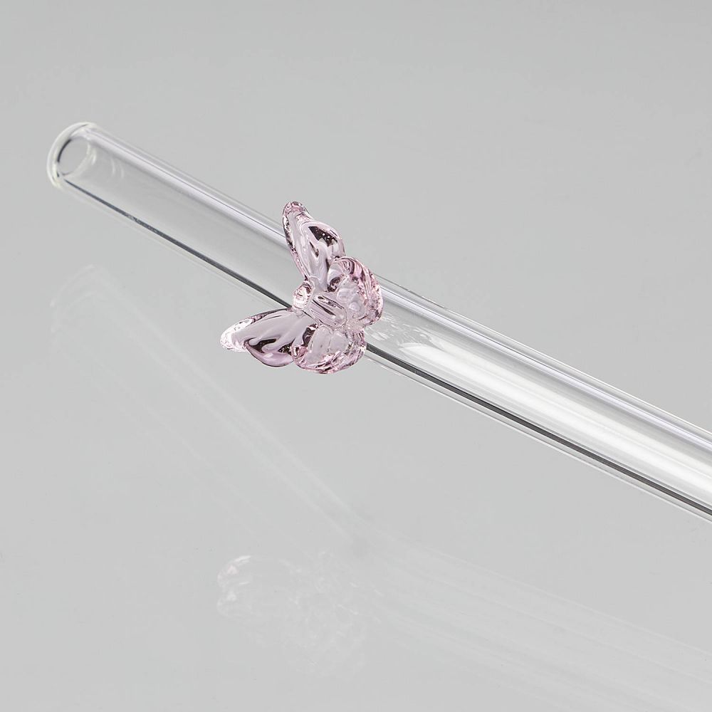 καλαμάκια γυάλινα με διακοσμητικές πεταλούδες, σετ 5 τμχ