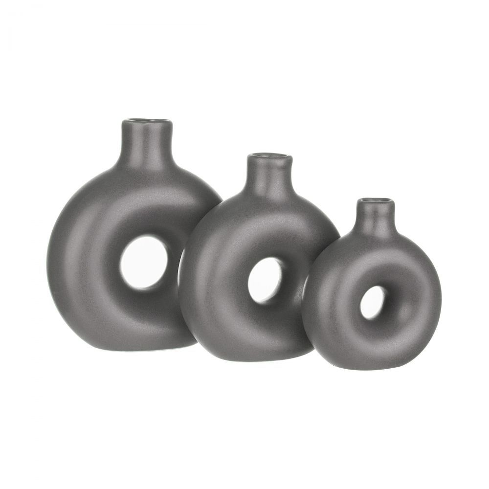 Αν υπάρχει ένα σχήμα βάζου που δεν πρέπει να λείπει από κανένα σύγχρονο σπίτι, είναι αυτό: Το μίνι βάζο LOOPY μας θυμίζει λίγο ντόνατ, και ίσως γι' αυτό το βρίσκουμε τόσο χαριτωμένο. Ως μικρό κεραμικό βάζο, είναι ιδανικό για να τοποθετήσετε διακοσμητικές πινελιές στο τραπέζι ή σε έναν δίσκο, ακόμη και σε συνδυασμό διαφορετικών χρωμάτων και μεγεθών. Τα βάζα LOOPY διατίθενται σε μπεζ, ανοιχτό γκρι, ροζ και σκούρο γκρι - το καθένα σε τρία μεγέθη.