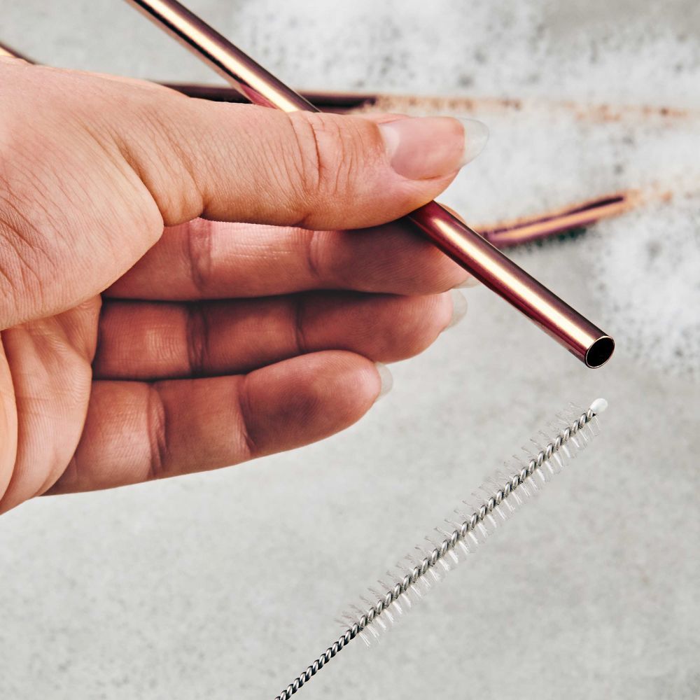 Τα καλαμάκια από ανοξείδωτο χάλυβα MANHATTAN LOUNGE σε ροζ-χρυσό σας δίνουν τη δυνατότητα να απολαύσετε το κοκτέιλ σας με την ευχάριστη αίσθηση ότι δεν επιβαρύνετε το περιβάλλον. Το σετ περιλαμβάνει 4 τεμάχια και βουρτσάκι καθαρισμού.