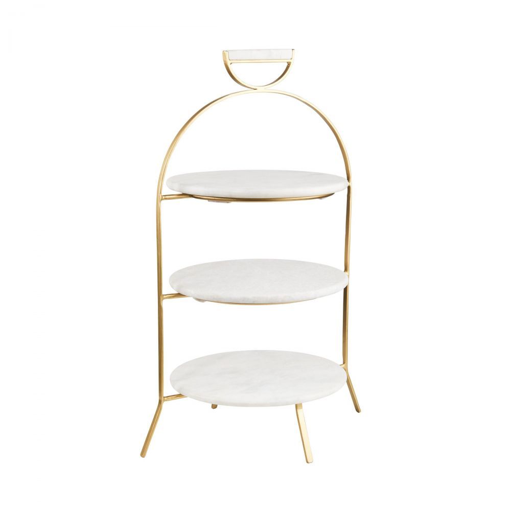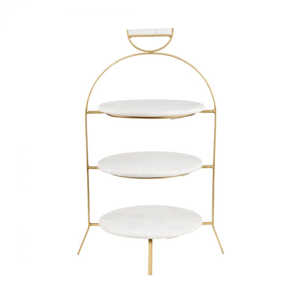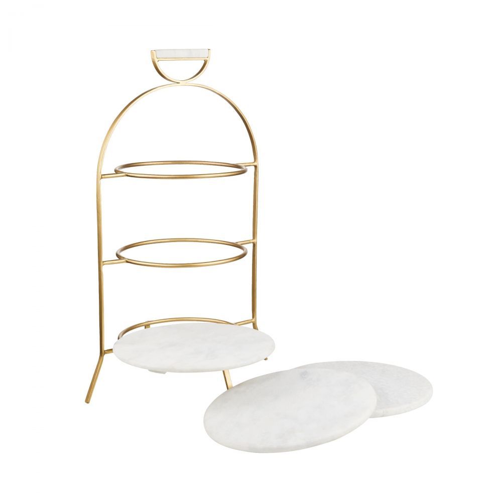 Η εκθαμβωτική χρυσή εταζέρα Marble με αφαιρούμενες πλάκες από μάρμαρο εντυπωσιάζει τους επισκέπτες σας με γλυκά ή φαγητά. Όσο υπέροχη είναι εμφανισιακά, τόσο πλούσιο δείχνει το τραπέζι στο οποίο τοποθετείται και είναι αρκετά βαριά λόγω των υλικών κατασκευής της που είναι μέταλο και πραγματικό μάρμαρο.