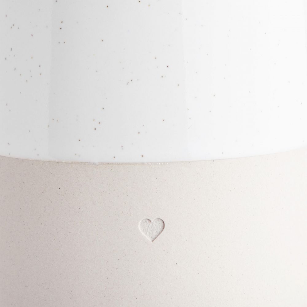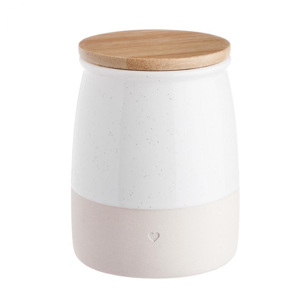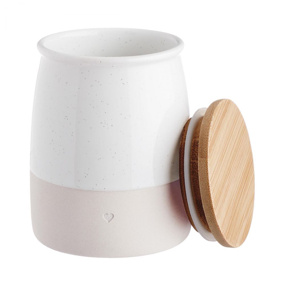 Είναι τα μικρά πράγματα που κάνουν τη ζωή, τη διακόσμηση και τη διαβίωση ξεχωριστή - και με το πήλινο βάζο αποθήκευσης ME TIME, η μικρή καρδιά. Ολοκληρώνει γοητευτικά το μοντέρνο, δίχρωμο σχέδιο σε λευκό και φυσικό χρώμα. Σύμφωνα με αυτή την μάλλον καθαρή εμφάνιση, το καπάκι είναι κατασκευασμένο από μπαμπού και είναι εφοδιασμένο με σφράγισμα σιλικόνης για να διασφαλίζει τη στεγανότητα. Διατίθεται σε μια ακόμη έκδοση, επίσης ιδανική για συνδυασμό.