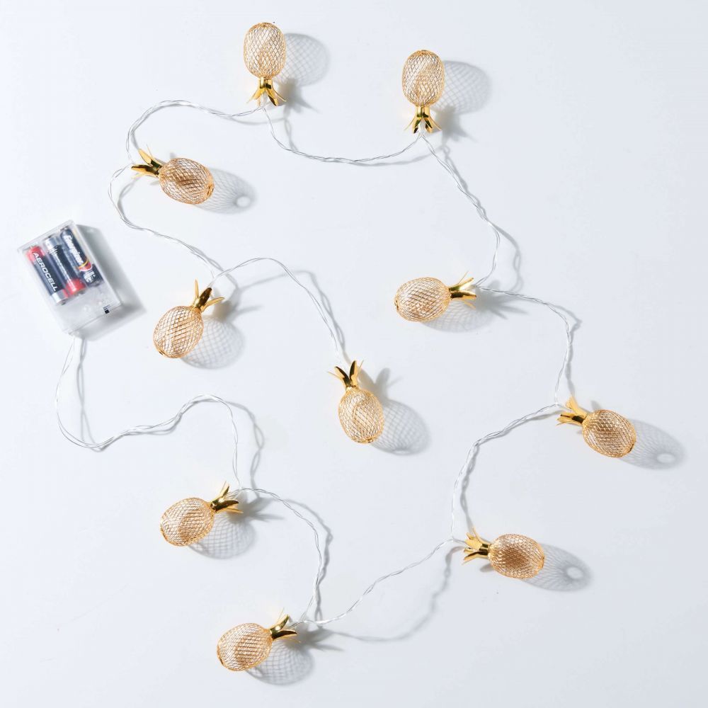 Κάνε τη ζωή σου πολύχρωμη και διασκεδαστική με την ελαφριά αλυσίδα φωτισμού LED Miami "Pineapple" με θήκη μπαταρίας USB. Υπάρχουν 10 χρυσοί ανανάδες με λαμπερή εμφάνιση, που λειτουργούν με μπαταρία. Υπέροχη αλυσίδα φωτισμού στην κουζίνα, στο μπάνιο ή ως διακόσμηση σε πάρτι.