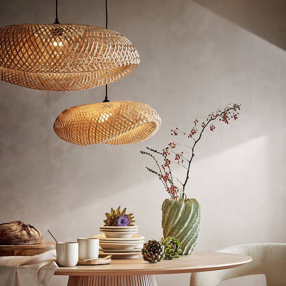 Το κρεμαστό φωτιστικό MISAKI είναι οργανικά διαμορφωμένο και κατασκευασμένο από την ανανεώσιμη πρώτη ύλη μπαμπού. Το ιδιαίτερο φυσικό του στυλ ταιριάζει με τα απαλά, καμπύλα σχήματα κάνοντας αυτό το κρεμαστό φωτιστικό, να δημιουργεί ένα εκλεπτυσμένο εφέ φωτισμού. Διατίθεται σε περαιτέρω μέγεθος.