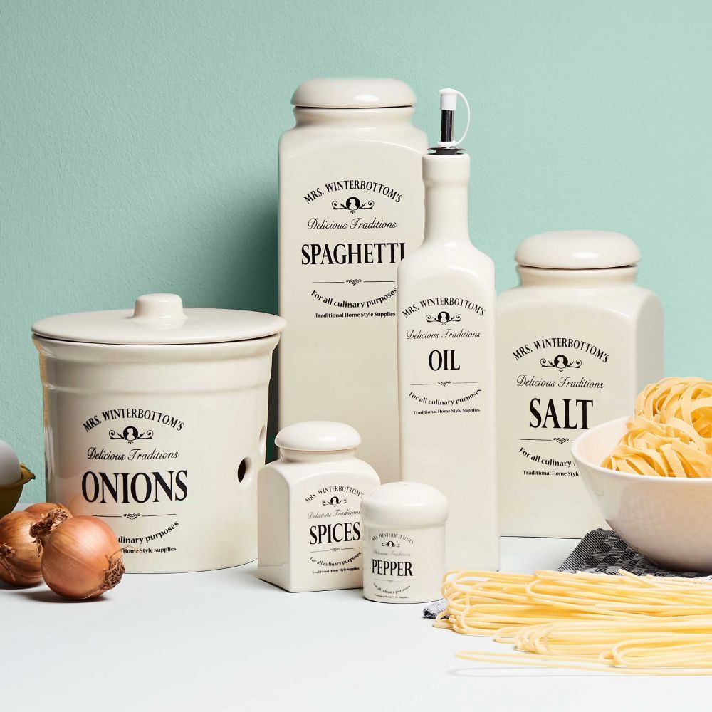 Ένα μέρος για τα πάντα και όλα θα είναι στη θέση τους. Μια καλή κουζίνα δεν είναι πλήρης χωρίς την ποικιλία των βάζων αποθήκευσης της σειράς MRS. WINTERBOTTOM'S , πουέχει όλα τα αξεσουάρ κουζίνας που θα χρειαστείτε. Μπορείτε να αποθηκεύσετε ή και να σερβίρετε σε αυτά τα παραδοσιακά βάζα, μπουκάλια, μπολ, πιάτα, κανάτες κλπ. Όλα τα πήλινα είδη έχουν κατασκευαστεί αποκλειστικά για το Butlers και διαθέτουν χαρακτηριστική αγγλική διακόσμηση. Και φυσικά τα πάντα ταιριάζουν τέλεια!