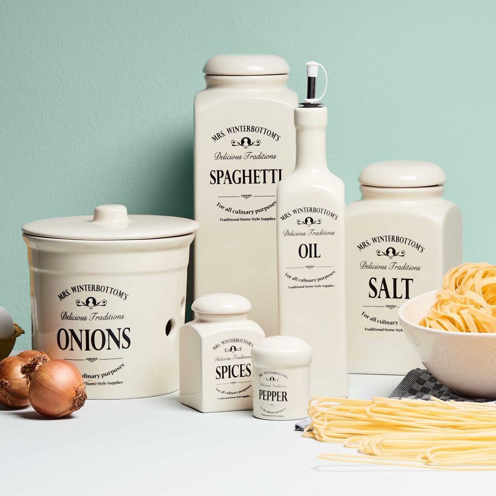 Ένα μέρος για τα πάντα και όλα θα είναι στη θέση τους. Μια καλή κουζίνα δεν είναι πλήρης χωρίς την ποικιλία των βάζων αποθήκευσης της σειράς MRS. WINTERBOTTOM'S , που έχει όλα τα αξεσουάρ κουζίνας που θα χρειαστείτε. Μπορείτε να αποθηκεύσετε ή και να σερβίρετε σε αυτά τα παραδοσιακά βάζα, μπουκάλια, μπολ, πιάτα, κανάτες κλπ. Όλα τα πήλινα είδη έχουν κατασκευαστεί αποκλειστικά για τα Butlers και διαθέτουν χαρακτηριστική αγγλική διακόσμηση. Και φυσικά τα πάντα ταιριάζουν τέλεια!